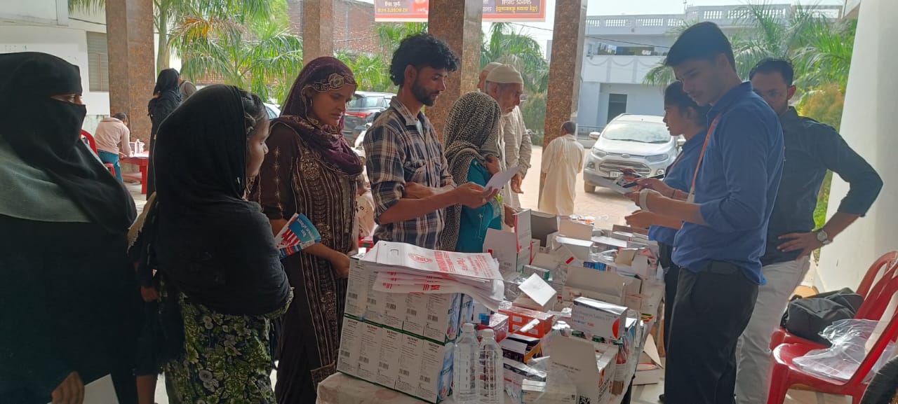 श्री महंत इन्दिरेश अस्पताल की ओर से निःशुल्क जांचें की गईं और फ्री दवाईयां भी बांटी गई
