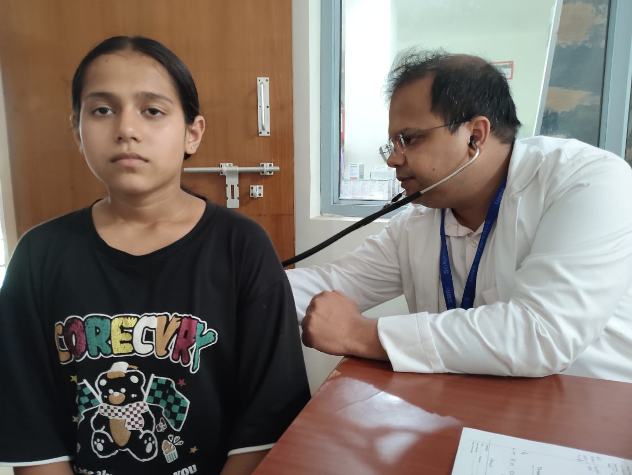 Home » Blog » एकलव्य माॅडल रेजीडेंशियल स्कूल में श्री महंत इन्दिरेश अस्पताल का निःशुल्क स्वास्थ्य शिविर; 202 छात्राओं, शिक्षकों एवं स्टाफ सदस्यों ने स्वास्थ्य शिविर का उठाया लाभ