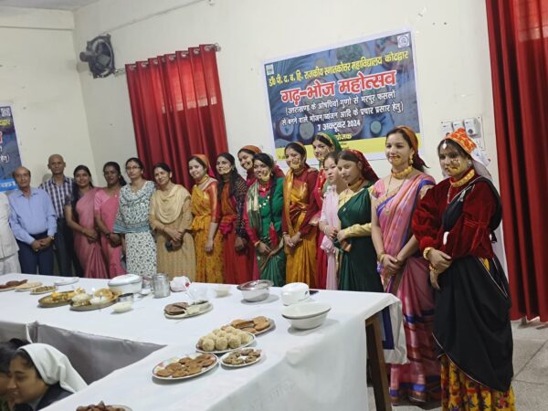 कोटद्वार । राजकीय स्नातकोत्तर महाविद्यालय कोटद्वार में गढ़भोज महोत्सव का आयोजन किया गया। जिसमें विद्यार्थियों ने मोटे अनाजों से बने विभिन्न व्यंजनों को प्रदर्शित किया। इस कार्यक्रम में महाविद्यालय के गृह विज्ञान, बीएड विभाग, भूगोल विभाग एवं राष्ट्रीय सेवा योजना के विद्यार्थियों ने भाग लिया। कार्यक्रम के मुख्य अतिथि गढ़वाली साहित्य में अपना अमूल्य योगदान देने वाले धाद संस्था के पूर्व अध्यक्ष जगमोहन सिंह बिष्ट, विशिष्ट अतिथि सिद्धबली मंदिर समिति के अध्यक्ष डॉ जेपी ध्यानी थे । अतिथियों का स्वागत कार्यक्रम की संयोजक डॉ सरिता चौहान द्वारा किया गया तत्पश्चात बिष्ट ने विद्यार्थियों को मोटे अनाज से बनने वाले विभिन्न व्यंजनों के लाभ के साथ-साथ उनके बनाने हेतु सामाजिक परिप्रेक्ष्य से भी अवगत करवाया।