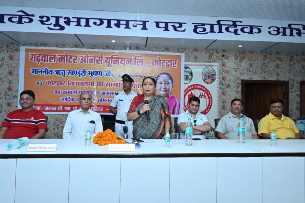 कोटद्वार । विधानसभा अध्यक्ष ऋतु खण्डूडी भूषण, ने कोटद्वार स्थित गढ़वाल मोटर्स ऑनर्स यूनियन लिमिटेड के सभागार में आयोजित एक विशेष कार्यक्रम में मुख्य अतिथि के रूप में प्रतिभाग किया। यह कार्यक्रम यूनियन के नवगठित संचालक मंडल के गठन के उपलक्ष्य में आयोजित किया गया था। इस अवसर पर विधानसभा अध्यक्ष ने नवगठित संचालन मंडल को हार्दिक शुभकामनाएं प्रेषित करते हुए ईमानदारी, एकजुटता और सेवा भावना से कार्य करने की प्रेरणा दी।