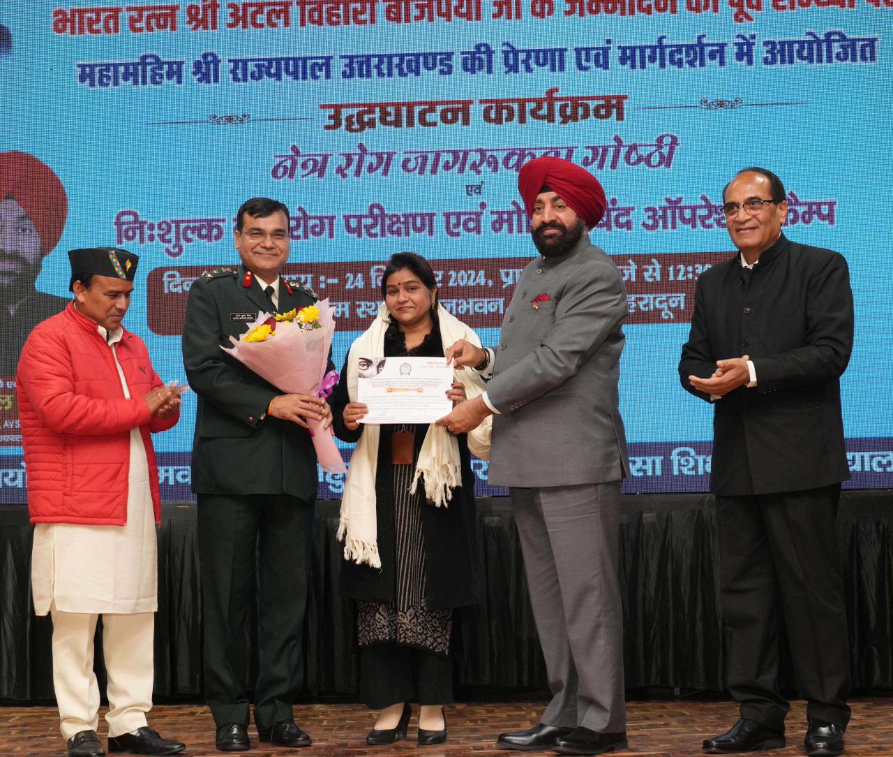 देहरादून : राज्यपाल लेफ्टिनेंट जनरल गुरमीत सिंह (से नि) ने मंगलवार को राजभवन में हेमवती नंदन बहुगुणा उत्तराखण्ड चिकित्सा शिक्षा विश्वविद्यालय द्वारा आयोजित ‘‘नेत्र रोग जागरूकता गोष्ठी एवं मोतियाबिंद ऑपरेशन सप्ताह’’ के उद्घाटन कार्यक्रम में प्रतिभाग किया। राज्यपाल की प्रेरणा और मार्गदर्शन में 25 दिसंबर से 31 दिसंबर तक प्रदेश की 15 चिकित्सा इकाईयों में निःशुल्क नेत्र रोग परीक्षण और मोतियाबिंद ऑपरेशन कैंप आयोजित किए जा रहे हैं। इन शिविरों में आंखों की जांच, परामर्श, और मोतियाबिंद ऑपरेशन निःशुल्क किए जाएंगे। पूर्व सैनिकों और उनके आश्रितों के लिए मिलिट्री हॉस्पिटल देहरादून में आर्मी हॉस्पिटल दिल्ली के प्रसिद्ध सर्जन ब्रिगेडियर संजय मिश्रा द्वारा मोतियाबिंद के ऑपरेशन व परामर्श दिया जाएगा।