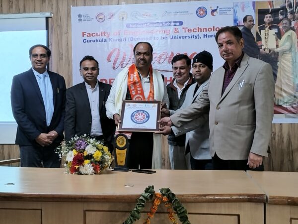 हरिद्वार : गुरुकुल कांगड़ी विश्वविद्यालय के राष्ट्रीय सेवा योजना द्वारा इंजीनियरिंग संकाय में आयोजित एक गरिमामयी समारोह में राष्ट्रपति पुरस्कार से सम्मानित डॉ. पियूष जैन का भव्य स्वागत किया गया। अभियांत्रिकी एवं प्रौद्योगिकी संकाय अध्यक्ष प्रो. सुनील पंवार ने डॉ. पियूष जैन का स्वागत किया , उन्होंने  कहा कि राष्ट्रीय खेल प्रोत्साहन पुरस्कार (2024) उनकी कठिन मेहनत और खेलों के प्रति समर्पण का प्रमाण है।