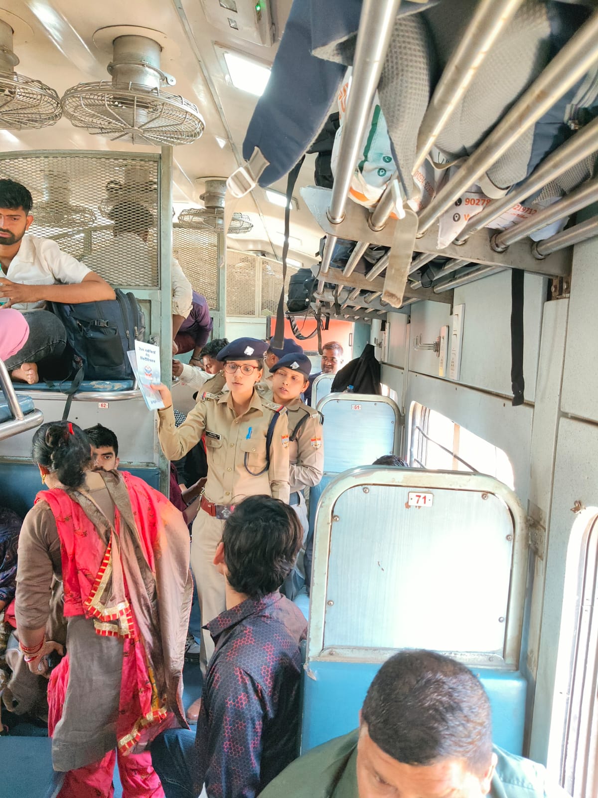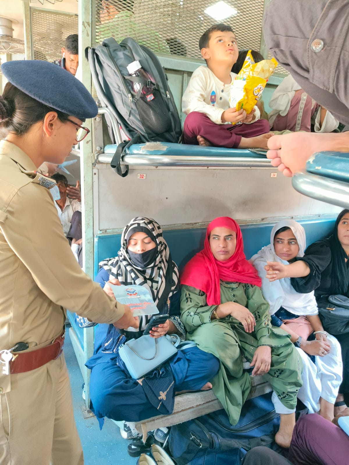 उत्तराखंड पुलिस एप्लीकेशन के अंतर्गत गौरा शक्ति माड्यूल के बारे में जानकारी देकर रजिस्ट्रेशन करने हेतु जागरूक किया गया महिलाओं को अपनी समस्या को गौरा शक्ति माड्यूल के अंतर्गत दर्ज कराने हेतु जागरूक किया गया एवं ट्रेन में यात्रा करने के दौरान बरती जाने वाली सावधानियों से संबंधित पंपलेट यात्रियों में वितरित किए गए एवं ट्रेन में पंपलेट चस्पा किए गए।