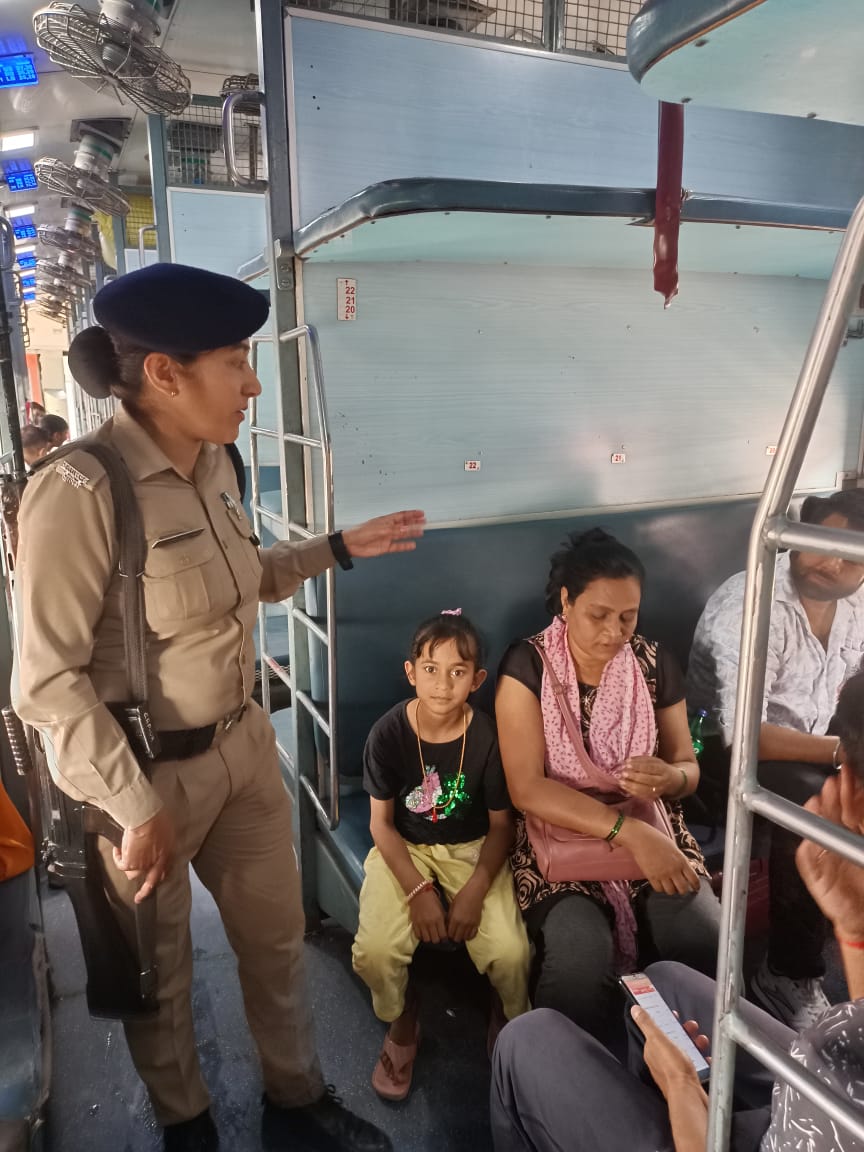 - महिला सुरक्षा : महिला यात्रियों को अपनी सुरक्षा के प्रति जागरूक रहने की सलाह दी गई। उन्हें आपातकालीन स्थिति में जीआरपी हेल्पलाइन नंबर और अन्य सुरक्षा उपायों के बारे में जानकारी दी गई। महिला यात्रियों को सतर्क रहने और किसी भी संदिग्ध गतिविधि की सूचना तुरंत पुलिस को देने के लिए कहा गया।