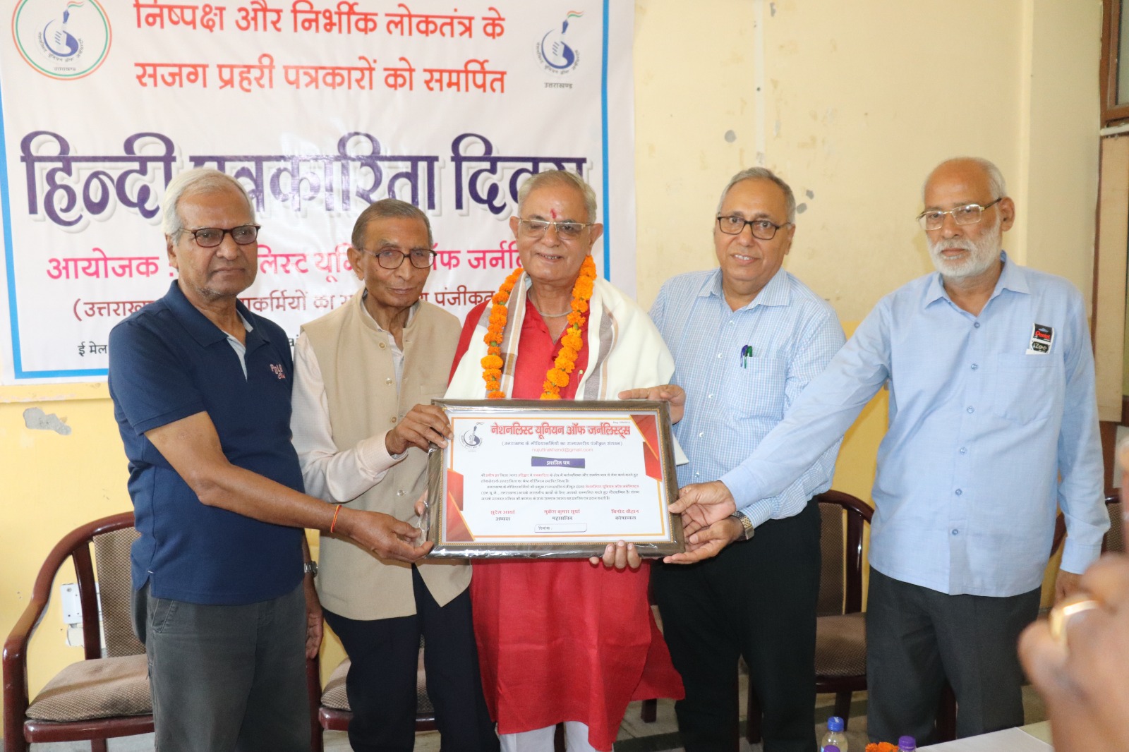 हरिद्वार। नेशनलिस्ट यूनियन ऑफ जर्नलिस्ट (एनयूजे उत्तराखण्ड) की हरिद्वार इकाई की ओर से हिंदी पत्रकारिता दिवस के उपलक्ष में बुधवार को नेहरू यूथ हॉस्टल में एक विचार गोष्ठी का आयोजन किया गया। जिसमें देश की आजादी से लेकर उत्तराखंड राज्य आंदोलन व राष्ट्रहित में पत्रकारिता की भूमिका पर चर्चा की गई। इस अवसर पर पत्रकारिता के क्षेत्र में उत्कृष्ट कार्य करने वाले पत्रकारों को यूनियन की ओर से सम्मानित भी किया गया।