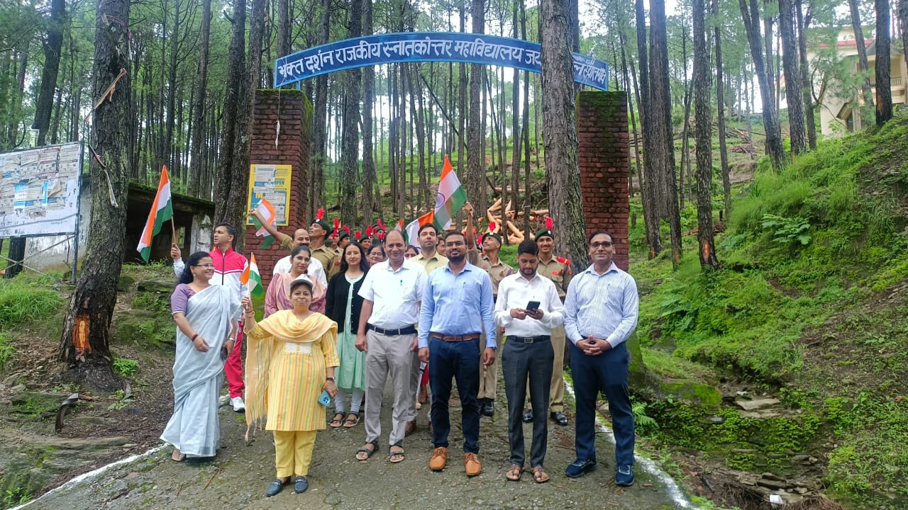 लैंसडाउन : भक्त दर्शन राजकीय  स्नातकोत्तर महाविद्यालय जयहरीखाल में धूमधाम और  हर्ष उल्लास के साथ से  मनाया गया स्वतंत्रता दिवस समारोह l कार्यक्रम का शुभारंभ महाविद्यालय की प्राचार्य डॉ. प्रो. लवनी आर राजवंशी द्वारा  ध्वजारोहण कर किया गया एनसीसी कैडेट्स के द्वारा मार्च पास्ट कर तिरंगे को  सलामी दी गई जिसका नेतृत्व यूनिट कमांडर छात्र गौरव गोड के द्वारा किया गया जिसके बाद  अमर शहीदों को याद करते हुए वॉल ऑफ हीरोज पर पुष्पांजलि अर्पित की गई l