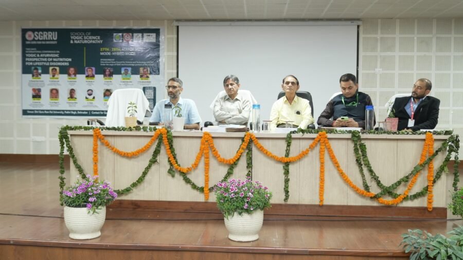 देहरादून। श्री गुरु राम राय विश्वविद्यालय (एसजीआरआरयू) में दो दिवसीय अंतरराष्ट्रीय योग सम्मेलन का भव्य आयोजन किया गया, जिसमें देश-विदेश से आए विशेषज्ञों, शोधार्थियों और योग साधकों ने उत्साहपूर्वक भाग लिया। “योग एवं आयुर्वेदिक पर्सपेक्टिव ऑफ न्यूट्रिशन फॉर लाइफस्टाइल डिसऑर्डर्स” विषय पर आयोजित इस सम्मेलन का उद्देश्य जीवनशैली संबंधी बीमारियों के समाधान में योग और आयुर्वेद की भूमिका को वैश्विक मंच पर प्रस्तुत करना रहा।