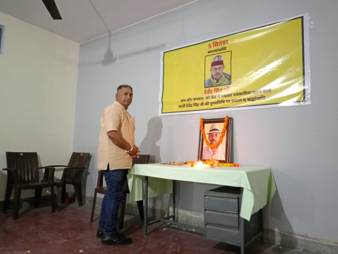 कोटद्वार। कोटद्वार में पत्रकारिता की मिसाल रहे देवेंद्र सिंह की छठी पुण्य तिथि पर विभिन्न संगठनों के लोगों ने उन्हें अपनी श्रद्धांजलि अर्पित की। इस अवसर पर बोलते हुए उत्तराखण्ड विकास पार्टी के सचिव एडवोकेट जगदीश चंद्र जोशी ने कहा कि आज भाजपा राज में सच्ची पत्रकारिता सीमा पर पहरा देने से भी दुरह हो गई है और भाजपा राज में पत्रकारों पर जिस तरह हमले हो रहे हैं वो दुर्भाग्यपूर्ण है। भारत में मोदी सरकार अभिव्यक्ति की स्वतंत्रता खत्म करना चाहती है इसी लिए राज्यों में लोकायुक्तों की नियुक्ति नहीं होने दी जा रही है, सूचना आयुक्तों के अधिकारों में कटौती कर दी गई है, पर जनता को इसलिए नहीं पता चल रहा क्योंकि पत्रकारिता का काम बड़े मीडिया संस्थान नहीं कर रहे है वे चाटुकारिता को पत्रकारिता समझने लगे हैं।