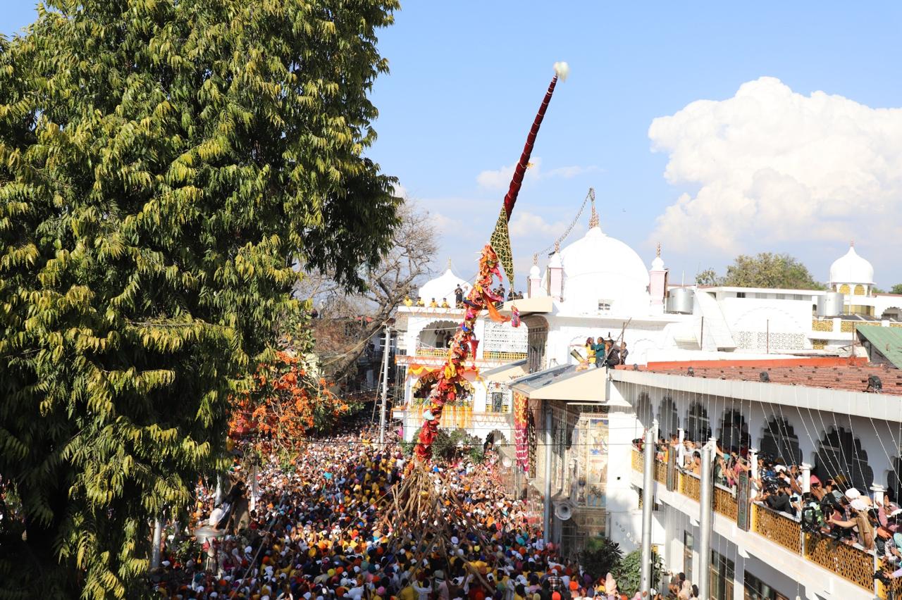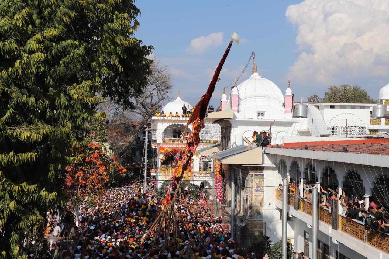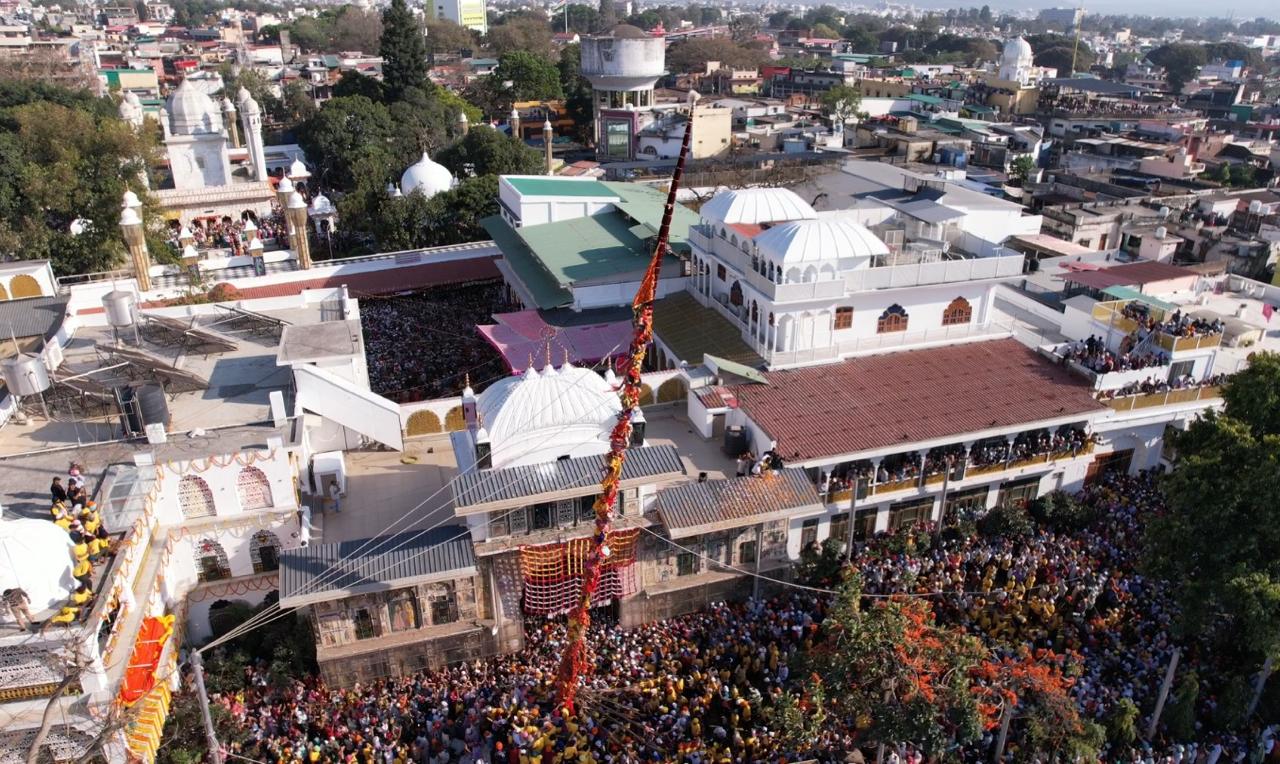 देहरादून। खुशियां नाल मनाईये जन्मदिन सद्गुरु दा…….. देखो देखों गुरां दा देखों झण्डा चढ़या….. , श्री गुरु राम राय जी महाराज व श्रीमहंत देवेन्द्र दास जी महाराज के जयकारों के साथ बुधवार को श्री झण्डा साहिब का आरोहण किया गया। आस्था के महाकुंभ का साक्षी बनने के लिए श्री दरबार साहिब में बुधवार को श्रद्धालुओं का जनसैलाब उमड़ पड़ा। लाखों संगतें व दूनवासी श्री झण्डे जी के सम्मुख श्रद्धा के साथ शीश नवाए व हाथ जोड़े खड़े रहे। हर कोई श्री झण्डा साहिब के समक्ष मत्था टेकने और श्री गुरु राम राय जी महाराज के दर्शन को श्रद्धापूर्वक भावविभोर रहा। श्री दरबार साहिब परिसर व आसपास के क्षेत्रों में तिल रखने भर की भी जगह नहीं थी। जैसे-जैसे श्री झण्डे जी पर गिलाफ के आवरण चढ़ाने का क्रम बढ़ता जाता, संगतों व दूनवासियों का उत्साह भी पराकाष्ठा तक पहुंचता जाता। दर्शनी गिलाफ के चढ़ते ही व श्री झण्डे जी के आरोहण की प्रक्रिया प्रारम्भ होते ही श्री गुरु राम राय जी महाराज के जयकारों की ध्वनि तेज हो उठी। बुधवार शाम 3ः50 मिनट पर जैसे ही श्री दरबार साहिब देहरादून के सज्जादे गद्दी नशीन श्रीमहंत देवेन्द्र दास जी महाराज ने आरोहण की प्रक्रिया शुरू करने का संदेश दिया, वैसे ही पूरी द्रोणनगरी श्री गुरु राम राय जी महाराज के जयकारों से गूंज उठी। 4 बजकर 19 मिनट पर श्री झण्डे जी का आरोहण पूर्णं हुआ। संगतों व दूनवासियों ने श्री गुरु राम राय जी महाराज के जयकारे लगाए व ढोल की थाप पर जमकर नृत्य किया। इसी के साथ देहरादून के ऐतिहासिक एवम् सांस्कृतिक विरासत श्री झण्डे जी मेले का विधिवत शुभारंभ हो गया।