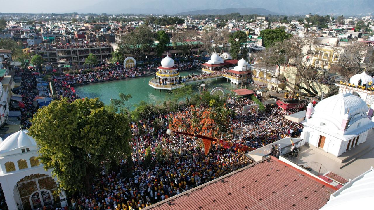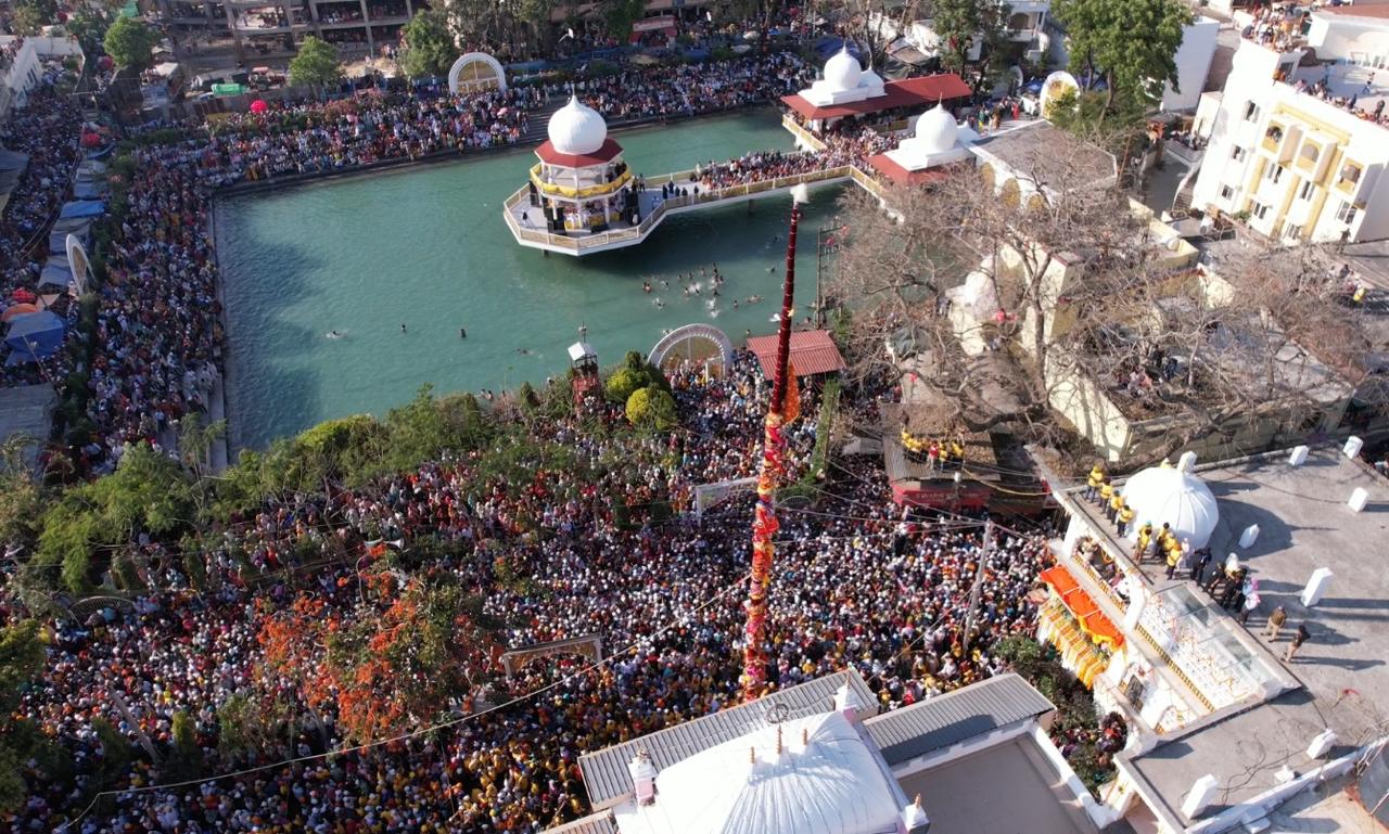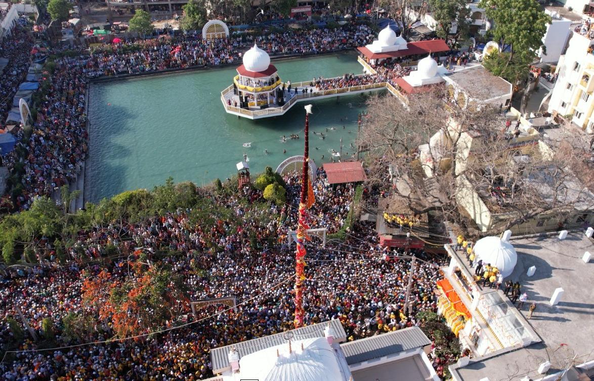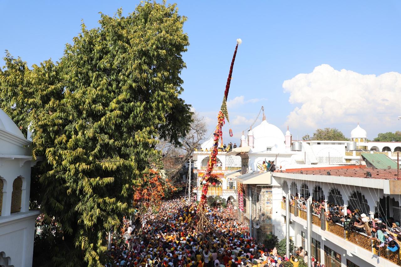 देहरादून। खुशियां नाल मनाईये जन्मदिन सद्गुरु दा…….. देखो देखों गुरां दा देखों झण्डा चढ़या….. , श्री गुरु राम राय जी महाराज व श्रीमहंत देवेन्द्र दास जी महाराज के जयकारों के साथ बुधवार को श्री झण्डा साहिब का आरोहण किया गया। आस्था के महाकुंभ का साक्षी बनने के लिए श्री दरबार साहिब में बुधवार को श्रद्धालुओं का जनसैलाब उमड़ पड़ा। लाखों संगतें व दूनवासी श्री झण्डे जी के सम्मुख श्रद्धा के साथ शीश नवाए व हाथ जोड़े खड़े रहे। हर कोई श्री झण्डा साहिब के समक्ष मत्था टेकने और श्री गुरु राम राय जी महाराज के दर्शन को श्रद्धापूर्वक भावविभोर रहा। श्री दरबार साहिब परिसर व आसपास के क्षेत्रों में तिल रखने भर की भी जगह नहीं थी। जैसे-जैसे श्री झण्डे जी पर गिलाफ के आवरण चढ़ाने का क्रम बढ़ता जाता, संगतों व दूनवासियों का उत्साह भी पराकाष्ठा तक पहुंचता जाता। दर्शनी गिलाफ के चढ़ते ही व श्री झण्डे जी के आरोहण की प्रक्रिया प्रारम्भ होते ही श्री गुरु राम राय जी महाराज के जयकारों की ध्वनि तेज हो उठी। बुधवार शाम 3ः50 मिनट पर जैसे ही श्री दरबार साहिब देहरादून के सज्जादे गद्दी नशीन श्रीमहंत देवेन्द्र दास जी महाराज ने आरोहण की प्रक्रिया शुरू करने का संदेश दिया, वैसे ही पूरी द्रोणनगरी श्री गुरु राम राय जी महाराज के जयकारों से गूंज उठी। 4 बजकर 19 मिनट पर श्री झण्डे जी का आरोहण पूर्णं हुआ। संगतों व दूनवासियों ने श्री गुरु राम राय जी महाराज के जयकारे लगाए व ढोल की थाप पर जमकर नृत्य किया। इसी के साथ देहरादून के ऐतिहासिक एवम् सांस्कृतिक विरासत श्री झण्डे जी मेले का विधिवत शुभारंभ हो गया।
