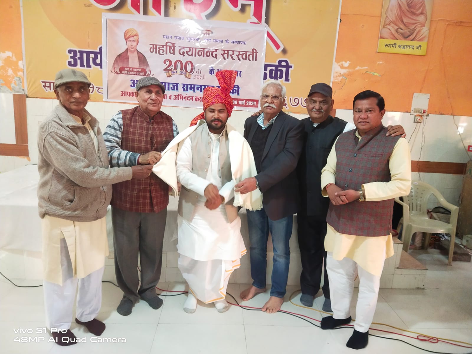 रूडकी : आर्य समाज रामनगर रुड़की में 6 मार्च दिन बुधवार महर्षि देव दयानंद जी का 200 वा जन्म दिवस बड़ी धूमधाम के साथ मनाया गया । कार्यक्रम का आरंभ प्रातः यज्ञ से किया गया यज्ञ के ब्रह्म आचार्य योगेंद्र मेधावी जी वेदाअलंकार गुरुकुल कांगड़ी विश्वविद्यालय हरिद्वार रहे । आज के यज्ञ में तीन यज्ञ कुंड बनाए गए थे । मुख्य यजमान आर्य समाज के सोम मोदी सपत्नी के रहे । उनके साथ आर्य समाज के प्रधान डॉक्टर दिनेंद्र सिंह विवेक अरोड़ा, आनंद, योगेश सैनी यजमान बने । आचार्य द्वारा यज्ञ संपन्न कराया गया तत्पश्चात आर्य समाज रामनगर के सदस्यों द्वारा सुंदर वेद भजनों की प्रस्तुति दी गई ।
