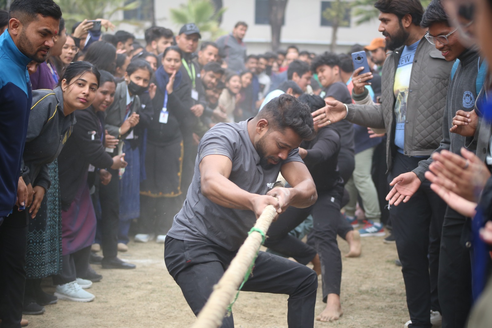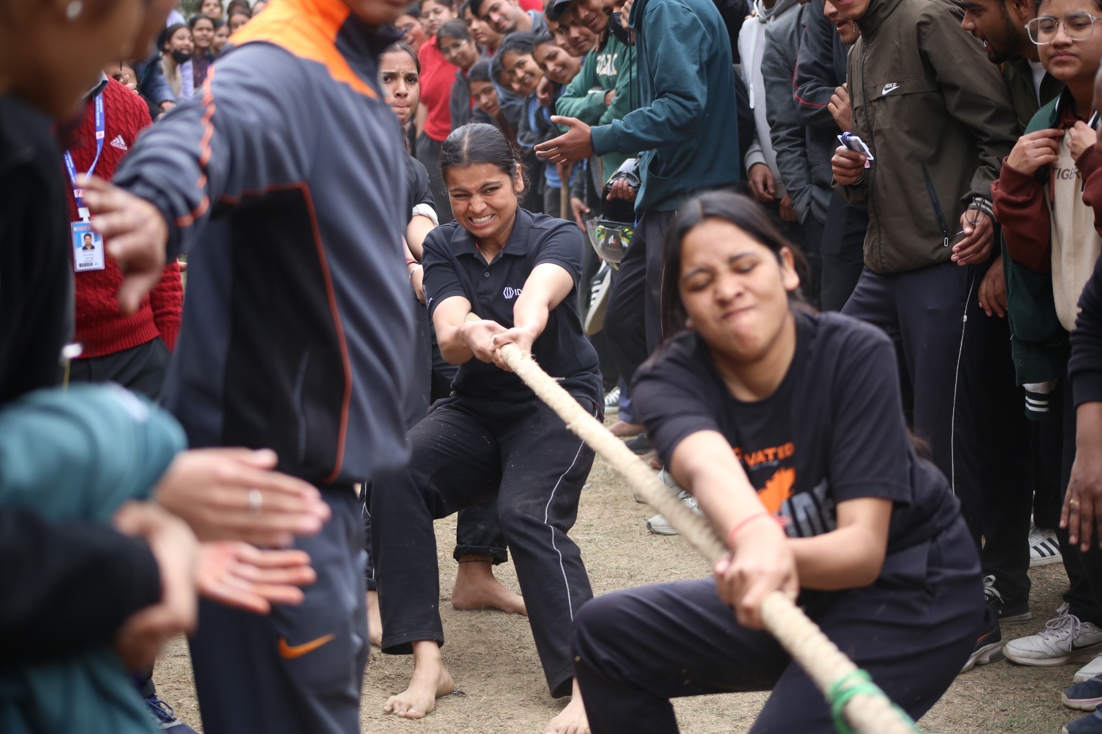 देहरादून। श्री गुरु राम राय विश्वविद्यालय (एसजीआरआरयू) की वार्षिक खेलकूद प्रतियोगिता खेलोत्सव-2024 का छठवा दिन रस्सा खीच, टेबल टेनिस, वालीबाॅल, बैडमिंटन एवं क्रिकेट प्रतियोगिताओं के नाम रहा। छठवां दिन बालक व बालिका वर्ग मे खेली गई अलग अलग स्पर्धाओं में छात्र-छात्राओं ने शारीरिक दम-खम का परिचय देते हुए फाइनल मैच जीते। शुक्रवार को रस्साकशी मे बालक वर्ग में ग्रुप ए सैमीफाइनल में स्कूल ऑफ़ मेैनेजमेंट एण्ड काॅमर्स स्टडीज ने स्कूल ऑफ़ हयूमेनटीज एण्ड सोशयल साइंसेज को हराया, वही ग्रुप बी में स्कूल ऑफ़ एग्रीकल्चरल साइंसेज ने स्कूल ऑफ़ फार्मास्यूटिकल साइंसेज को हराया। वहीं रस्साकशी में बालिका वर्ग में ग्रुप ए सैमीफाइनल में स्कूल ऑफ़ एग्रीकल्चरल साइंसेज ने स्कूल ऑफ़ कम्प्यूटर एप्लीकेशन एण्ड आई.टी. को हराया व ग्रुप बी सैमीफाइनल में स्कूल ऑफ़ पैरामेडिकल एण्ड एलाइड हैल्थ साइंसेज ने स्कूल ऑफ़ मेैनेजमेंट एण्ड काॅमर्स स्टडीज को हराया।