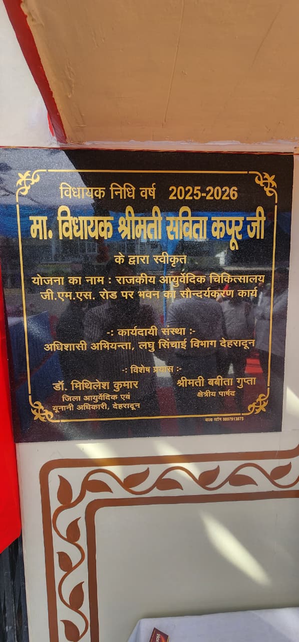 देहरादून : विधायक कैंट सविता कपूर ने बृहस्पतिवार को आयुष्मान आरोग्य मंदिर (आयुष), राजकीय आयुर्वेदिक चिकित्सालय, निरंजनपुर के सौंदर्यकृत भवन का उद्घाटन किया गया। इस अवसर पर विधायक ने कहा कि सरकार आमजन को बेहतर स्वास्थ्य सुविधाएँ उपलब्ध कराने के लिए निरंतर प्रयासरत है। इस मौके पर जिला आयुर्वेदिक एवं यूनानी अधिकारी ने विधायक को पंचायत भवन में संचालित चिकित्सालय भवन को आयुष विभाग को हस्तांतरित करने का प्रस्ताव भी रखा। इस पर विधायक ने पूर्ण आश्वासन दिया गया।