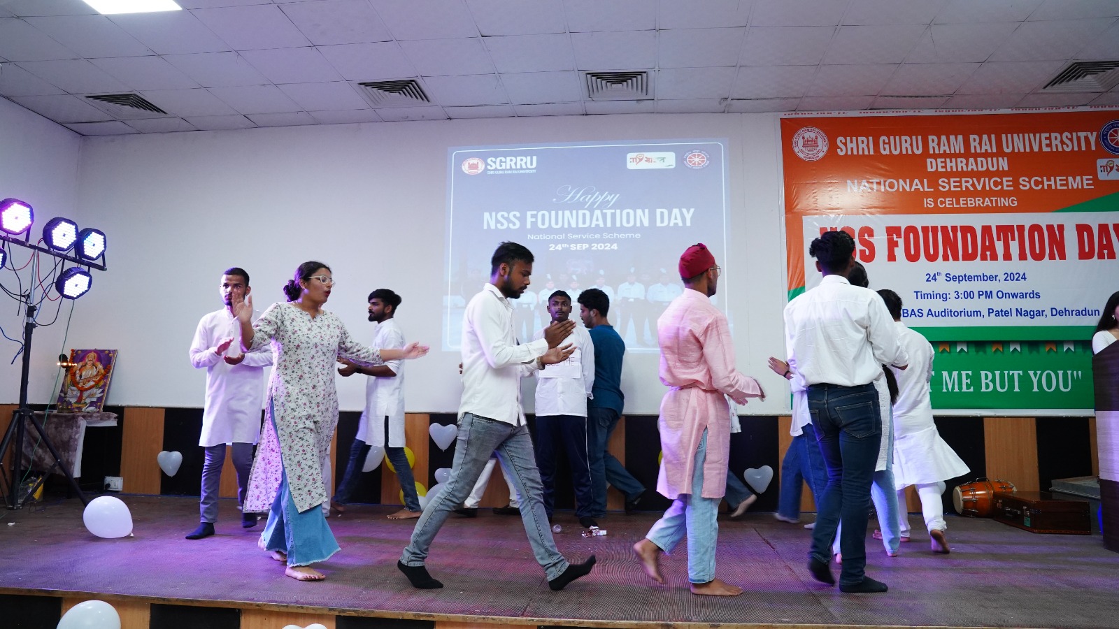 देहरादून। एसजीआरआर विश्वविद्यालय में आज राष्ट्रीय एनएसएस फाउन्डेशन डे की धुमधाम रही। विश्वविद्यालय के प्रेसीडेंट श्रीमहंत देवेन्द्र दास जी महाराज व कुलपति डाॅ. यशबीर दिवान ने कार्यक्रम के सफल आयोजन हेतु अपनी शुभकामनाए प्रेषित की। विश्वविद्यालय के सभागार मे आज एनएसएस फाउन्डेशन डे के अवसर पर रंगारंग कार्यक्रम आयोजित किया गया। कार्यक्रम का शुभारंभ मुख्य अतिथि एनएसएस समन्वयक, हेमवंती नन्दन बहुगुणा गढवाल विश्वविद्यालय, डाॅ. किरण वर्मा, एसजीआरआर विश्वविद्यालय के एनएसएस समन्वयक डाॅ. दीपक सोम व एनएसएस समन्वयक डाॅ. गीता रावत द्वारा दीप प्रज्जवलित कर किया गया।