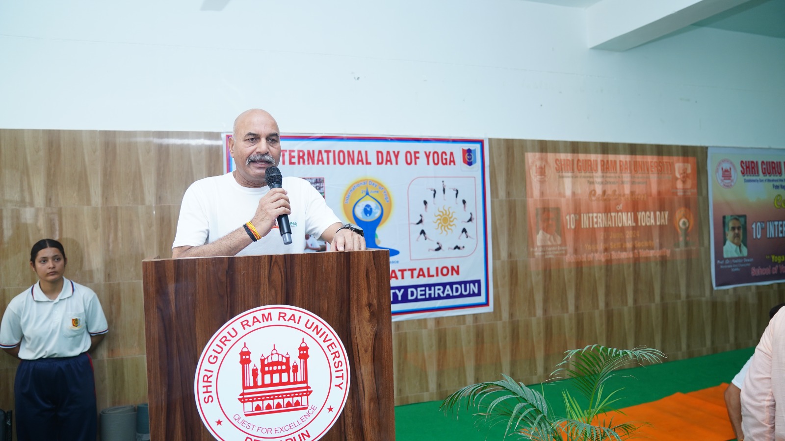 देहरादून। श्री गुरु राम राय विश्वविद्यालय (एसजीआरआरयू) में अंतर्राष्ट्रीय योग दिवस के अवसर पर स्कूल आफ यौगिक साइंस एवं नैचुरोपैथी द्वारा ‘स्वयं और समाज के लिए योग‘ वर्ष 2024 की थीम पर अंतर्राष्ट्रीय योग दिवस प्रोटोकॉल कार्यक्रम का आयोजन किया गया। श्री गुरु राम राय विश्वविद्यालय के प्रेसिडेंट श्रीमहंत देवेंद्र दास जी महाराज और विश्वविद्यालय के कुलपति प्रोफेसर डाॅ. यशबीर दीवान ने अंतर्राष्ट्रीय योग दिवस के अवसर पर सभी को शुभकामनाएं प्रेषित कीं।