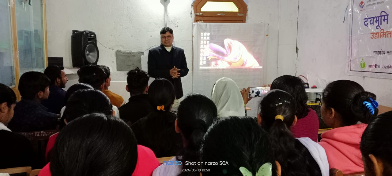नंदानगर : शहीद जगदीश प्रसाद पुरोहित राजकीय महाविद्यालय नंदानगर (घाट) में देवभूमि उद्यमिता योजना के अंतर्गत 12 दिवसीय उद्यमिता विकास कार्यक्रम के आठवें दिन छात्रों नवीन उत्पादों एवं भौगोलिक परिस्थिति पर आधारित वस्तुओं पर पेटेंट करने के बारे में सीखा। महाविद्यालय में डॉ. आशु रौलेट ने छात्रों को बौद्धिक संपदा अधिकार (IPR) के बारे में जानकारी प्रदान की । साथ ही छात्रों को भौगोलिक संकेत (GI) के बारे में जानकारी दी कि कैसे वे अपने आस पास होने वाली जड़ी-बूटी एवं औषधियों को भौगोलिक संकेतों का रूप दे सकते हैं और उनसे विभिन्न प्रकार के उत्पादन कर सकते हैं ।