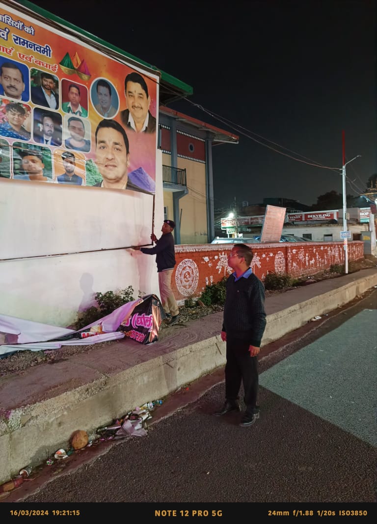 देहरादून : भारत निर्वाचन आयोग द्वारा लोकसभा सामान्य निर्वाचन -2024, के निर्वाचन कार्यक्रम की घोषणा उपरान्त ही राज्य में आदर्श आचार संहिता प्रभावी हो गयी है। आदर्श आचार संहिता प्रभावी होने के फलस्वरूप जिलाधिकारी/जिला निर्वाचन अधिकारी सोनिका के निर्देशों के क्रम में सम्बन्धित एआरओ द्वारा जनपद में सार्वजनिक स्थलों से राजनैतिक होर्डिंग, बैनर पोस्टर हटाने का कार्य किया जा रहा है। एआरओ/उप जिलाधिकारी सदर हर गिरि गोस्वामी द्वारा टीम के साथ विधानसभा-रायपुर अन्तर्गत सार्वजनिक स्थलों पर लगे होर्डिंग बैनर पोस्टर हटाने की कार्यवाही की जा रही है।