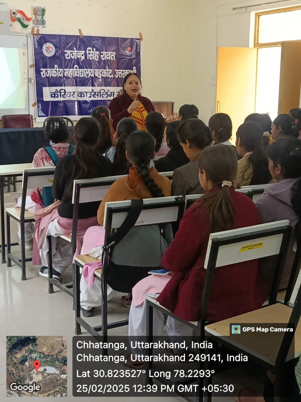 बड़कोट : राजकीय महाविद्यालय बड़कोट में करियर काउंसलिंग सेल एवं IQAC के संयुक्त तत्वावधान में व्यक्तित्व विकास पर एक विशेष व्याख्यान का आयोजन किया गया। कार्यक्रम की अध्यक्षता प्राचार्य डॉ. विनोद कुमार ने की, जिसका उद्देश्य छात्र-छात्राओं को व्यक्तित्व निर्माण, करियर मार्गदर्शन एवं प्रतियोगी परीक्षाओं में सफलता के लिए आवश्यक कौशल प्रदान करना था।