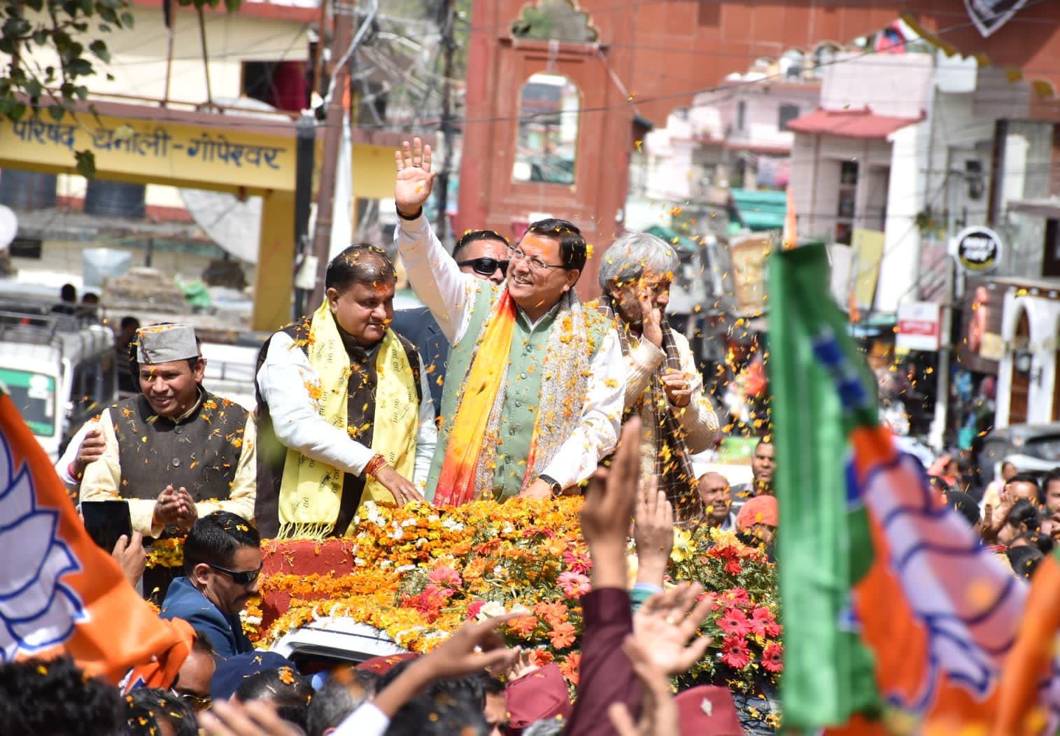 गोपेश्वर में सीएम धामी के भव्य रोड शो में उमड़ा जन सैलाब, पुष्प वर्षा से हुआ मुख्यमंत्री का भव्य स्वागत