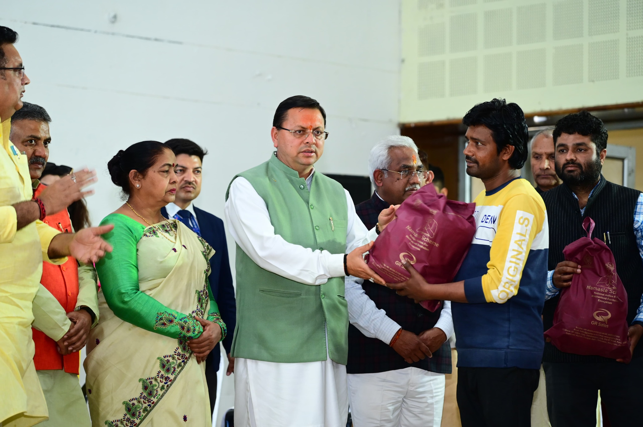 हरिद्वार/देहरादून : प्रधानमंत्री नरेन्द्र मोदी द्वारा बुधवार को पी.एम. सूरज पोर्टल प्रधानमंत्री सामाजिक उत्थान एवं रोजगार आधारित जनकल्याण पोर्टल का वर्चुअल शुभारंभ किया गया। इस अवसर पर मुख्यमंत्री पुष्कर सिंह धामी ऋषिकुल आयुर्वेदिक कॉलेज सभागार में इस कार्यक्रम में वर्चुअली शामिल हुए। इस अवसर पर मुख्यमंत्री ने सफाई मित्रों (सीवर और सेप्टिक टैंक श्रमिकों) को पीपीई किट प्रदान की।