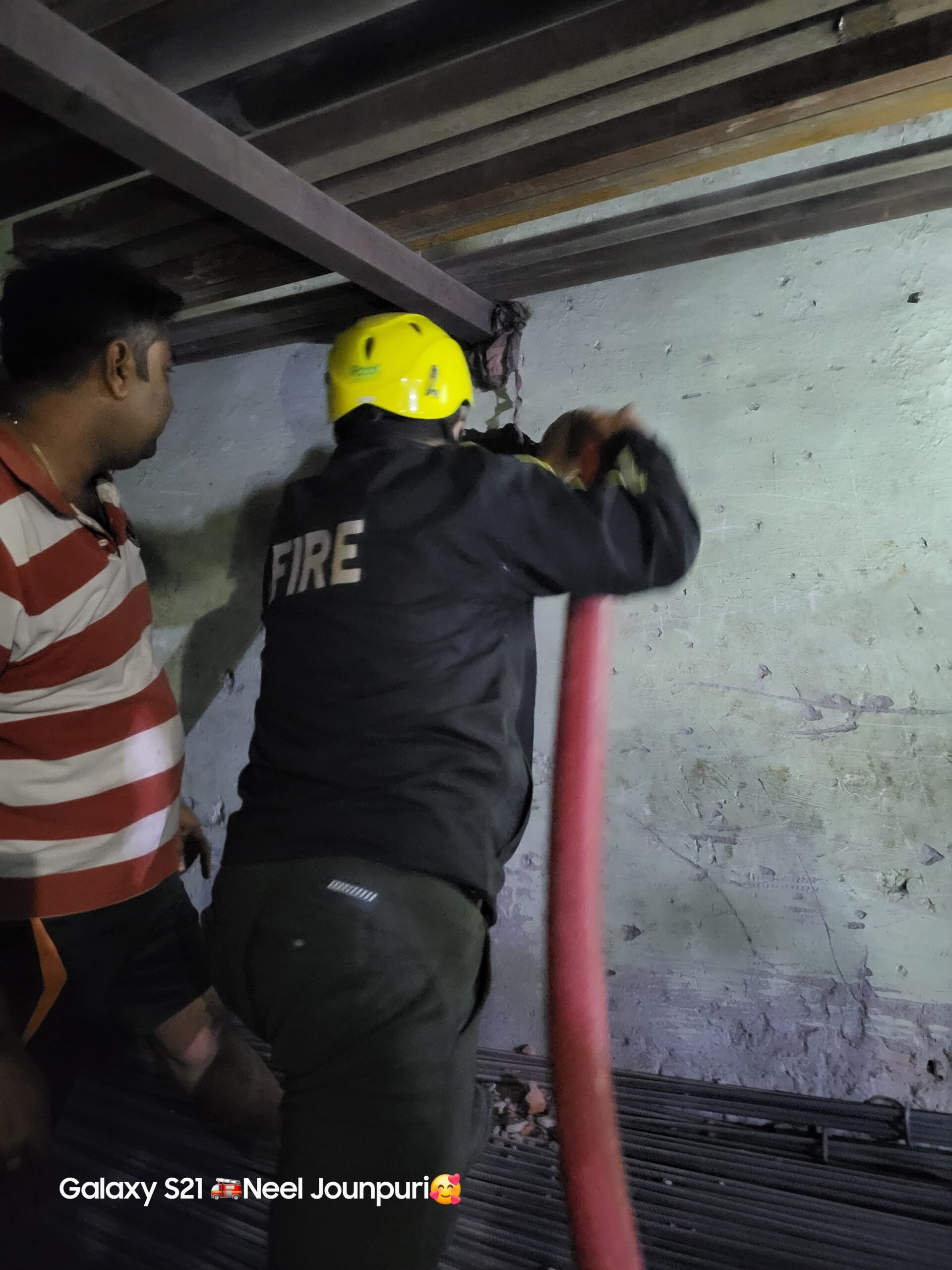 स्थानीय पुलिस फोर्स एवं फायर टेंडर ने आसपास की दुकानों को जलने से बचाया