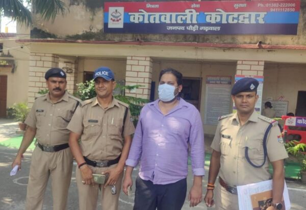 कोटद्वार। भाबर क्षेत्र के ग्राम किशनपुरी कोटद्वार निवासी सीताराम शाह ने कोतवाली कोटद्वार में दी गई तहरीर में बताया कि जशोधरपुर कोटद्वार में स्थित फैक्ट्री हिमगिरी इस्पात प्राइवेट लिमिटेड के मालिक शान मलिक द्वारा उनके मजदूरों का लगभग 7,35,000 रुपये का वेतन न देकर उनके साथ धोखाधड़ी कर गुमराह किया जा रहा है। वरिष्ठ पुलिस अधीक्षक पौड़ी लोकेश्वर सिंह द्वारा आम जनमानस के साथ हो रही धोखाधड़ी की घटनाओं को गम्भीरता से लेते हुए अभियुक्त को शीघ्र गिरफ्तार करने के निर्देश पर अपर पुलिस अधीक्षक कोटद्वार जया बलोनी के निर्देशन, पुलिस उपाधीक्षक कोटद्वार विभव सैनी के पर्यवेक्षण एवं प्रभारी निरीक्षक रमेश तनवर के नेतृत्व में गठित पुलिस टीम द्वारा केला भट्टा, थाना बजरिया, गाजियाबाद, उप्र निवासी शान मलिक उर्फ शान-ए-आजम पुत्र बुंदु मलिक को मेरठ से गिरफ्तार किया गया। अभियुक्त को न्यायालय के समक्ष पेशकर आवश्यक कार्यवाही की जा रही है।
