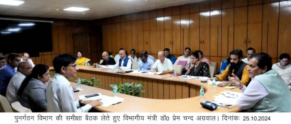 देहरादून : प्रदेश के पुनर्गठन मंत्री डॉ. प्रेम चन्द अग्रवाल ने विधानसभा स्थित सभागार कक्ष में पुनर्गठन विभाग तथा संबंधित विभाग के अधिकारियों के साथ समीक्षा बैठक की। मंत्री ने कहा कि उत्तर प्रदेश से विभाजित होने के पश्चात से ही उत्तराखण्ड तथा उत्तर प्रदेश के बीच परिसम्मपत्तियों के बंटवारे को लेकर बातचीत तथा बैठकें समय-समय पर आयोजित की जाती रही हैं। इसी कड़ी में आज भी परिसम्मपत्तियों को लेकर पुनर्गठन से जुड़े हुए सभी विभागों के अधिकारियों के साथ बैठक की गई।