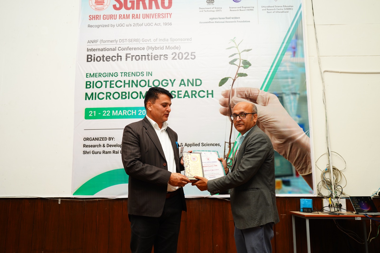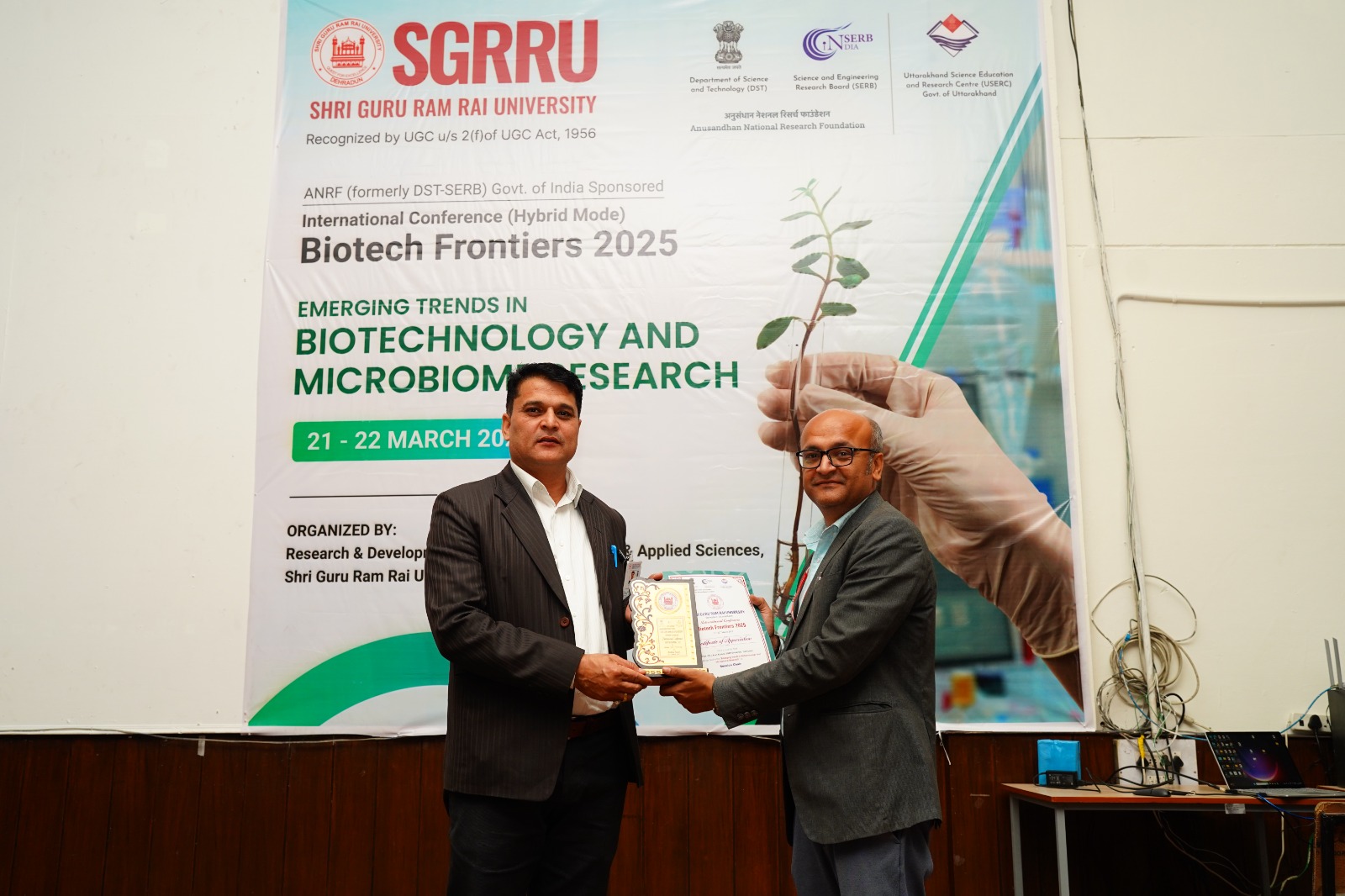 डाॅ कुमार सिद्धार्थ सिंह, आईआईटी पटना, प्रो. डाॅ सुदर्शन सिंह, चियंगमिआई विश्वविद्यालय, थाईलैंण्ड, प्रो. वेरेनियम ओहाल, प्रो अनासेचेज सिल्वा, काइंब्रा विश्वविद्यालय, पुर्तगाल सहित 100 से अधिक शोधार्थियों ने अपने अपने शोध पत्रों के माध्यम से बायोटेक से सम्बन्धित विभिन्न महत्वपूर्णं विषयों पर जानकारी सांझा की। श्री गुरु राम राय विश्वविद्यालय की निहारिका आर्या को बैस्ट पोस्टर का अवार्ड मिला। दिशांनी मलिक, आईआईटी रुड़की को यंग साइंटिस्ट अवार्ड से सम्मानित किया गया। विश्वविद्यालय की कुलपति डाॅ प्रो. कुमुद सकलानी, प्रो. जे.पी. पचैरी, सलाहकार, प्रेजिडेंट, श्री गुरु राम राय विश्वविद्यालय, डाॅ लोकेश गम्भीर, कुलसचिव, एसजीआरआरयू एवं डाॅ गिरीश चन्द्रा द्वारा सभी विजेताओं को सम्मानित किया गया। डाॅ रश्मि वर्मा जुयाल ने धन्यवाद ज्ञापित किया।