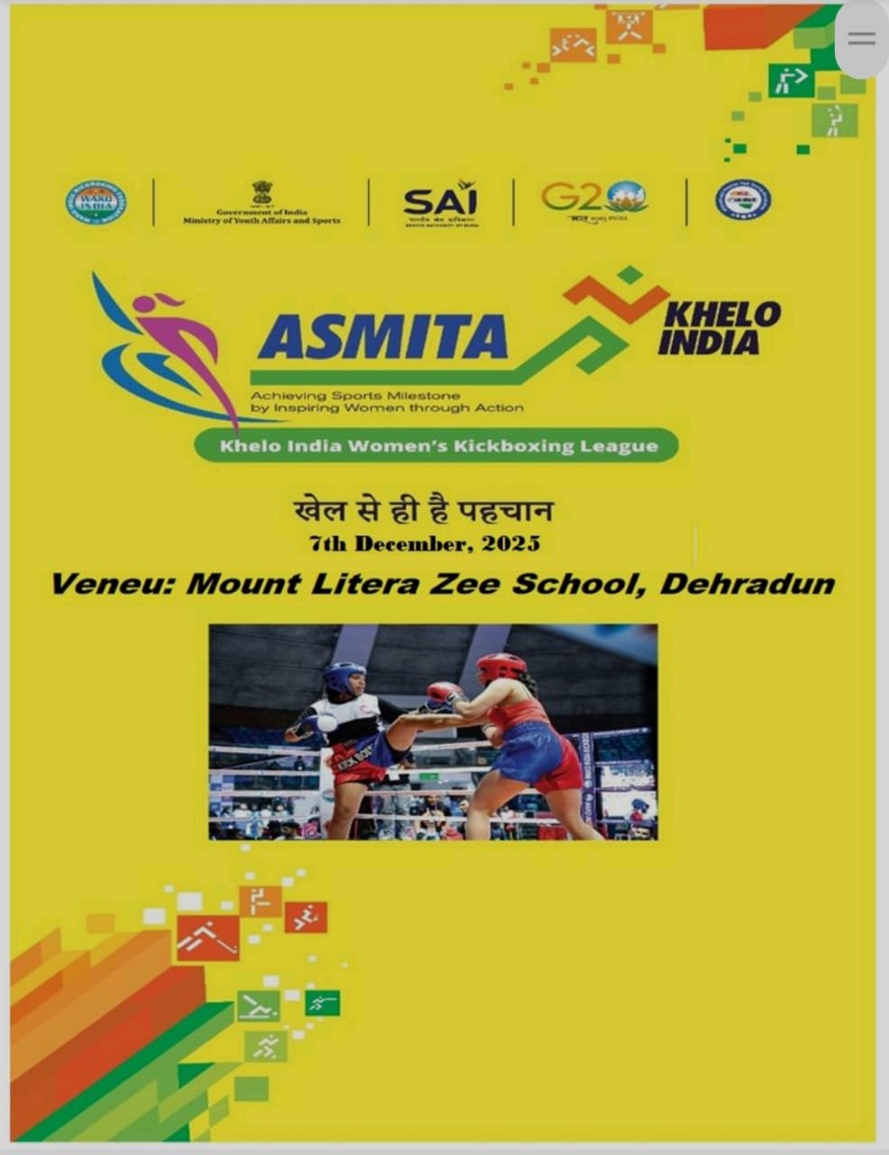 देहरादून । देहरादून में 7 दिसंबर को खेलो इंडिया द्वारा 113वीं अस्मिता किक बॉक्सिंग लीग का आयोजन माउंट लिटर जी स्कूल में किया गया। इस प्रतिष्ठित प्रतियोगिता में ऋषिकेश के किक बॉक्सिंग कोच अनुज गौड़ के मार्गदर्शन में परमार्थ विद्या मंदिर विद्यालय की प्रतिभाशाली छात्राओं ने हिस्सा लिया और अपने शानदार प्रदर्शन से सबका दिल जीत लिया।