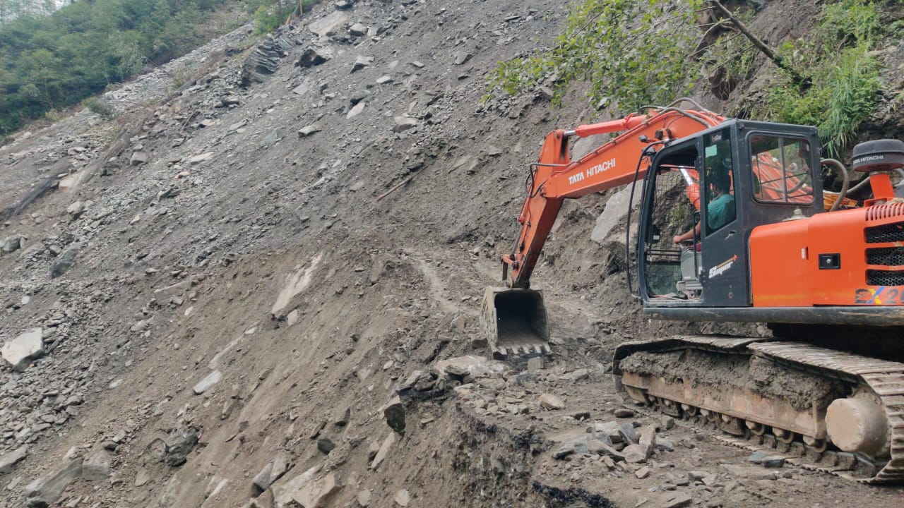 सोनप्रयाग एवं गौरीकुंड के बीच पोकलैंड मशीन द्वारा सड़क की कटिंग का कार्य कर लिया गया पूर्ण