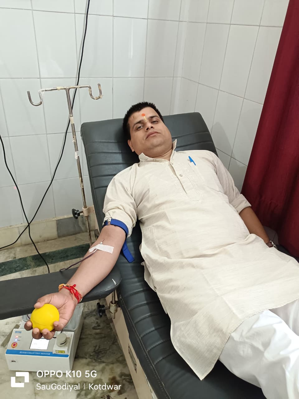 मंच के जिला संयोजक सौरभ गोदियाल ने वृक्षारोपण करने के उपरांत स्वैच्छिक रक्तदान किया एवं लोगों को रक्तदान के प्रति जागरूक किया। वह विगत 11 वर्षों से स्वैच्छिक रक्तदान कर रहे हैं एवं आवश्यकता पड़ने पर 42 से अधिक बार रक्तदान कर चुके हैं। जन्म दिवस के उपलक्ष में सौरभ गोदियाल के वृक्षारोपण एवं रक्तदान करने की वजह से पूरे कोटद्वार में चर्चा का विषय बना हुआ है। सौरभ गोदियाल ने सभी युवाओं से अपील की है कि आप भी ज्यादा से ज्यादा रक्तदान एवं वृक्षारोपण कर वातावरण को शुद्ध करने में योगदान प्रदान करें। इस अवसर पर मंच के जिला संयोजक सौरभ गोदियाल, जिला सहसंयोजक अनूप ध्यानी, प्रीतम नेगी, तरुण जदली, हिमांशु बिष्ट, संदीप डोबरियाल, कपिल राज निषाद, गौरव बिष्ट, पवन जुयाल, सत्यपाल सिंह, आनंद गोस्वामी, सारिका कठैत, मनीषा राणा, रश्मि रावत, सोनम, आदि ने प्रतिभाग किया।