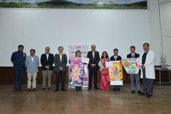 देहरादून। श्री महंत इन्दिरेश अस्पताल के कैंसर सर्जरी विभाग की ओर से कैंसर जागरूकता कार्यक्रम आयोजित किया गया। देहरादून के विभिन्न स्कूलों के 12 स्कूलों के 120 बच्चों ने पोस्टर प्रतियोगिता में प्रतिभाग किया। हिमालयन पब्लिक स्कूल की अन्नया को बेस्ट पोस्टर बनाने के लिए प्रथम पुरस्कार से नवाजा गया। श्री गुरु राम राय पब्लिक स्कूल पटेल नगर के राम विशाल को द्वितीय एवं एसजीआरआर पब्लिक स्कूल तालाब शाखा के अभिषेक के पोस्टर को तृतीय स्थान प्राप्त हुआ। विजेता बच्चों को पुरस्कार देकर सम्मानित किया गया। प्रतियोगिता में प्रतिभाग करने वाले सभी 120 बच्चों को प्रमाण पत्र देकर उत्साहवर्धन किया गया। 10 बच्चों को सांत्वना पुरस्कार दिए गए।