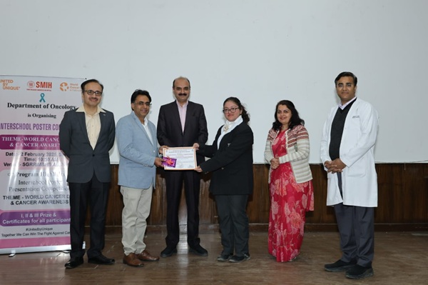 इस अवसर पर डाॅ पंकज कुमार गर्ग ने कहा कि वल्र्ड कैंसर डे एण्ड कैंसर अवेयरनेस थीम पर आयोजित पोस्टर प्रतियोगिता में बच्चों ने बढ़चढ़ कर भागीदारी की। उन्होंने कहा कि कैंसर एक गम्भीर बीमारी है जो किसी को भी अपना शिकार बना सकती है। इसके प्रति जागरूकता फैलाने के लिए कैंसर जागरूकता दिवस मनाया जाता है। कुछ शुरूआती संकेतों की मदद से समय रहते कैंसर को पहचाना जा सकता है व इसकी रोकथाम की जा सकती है।