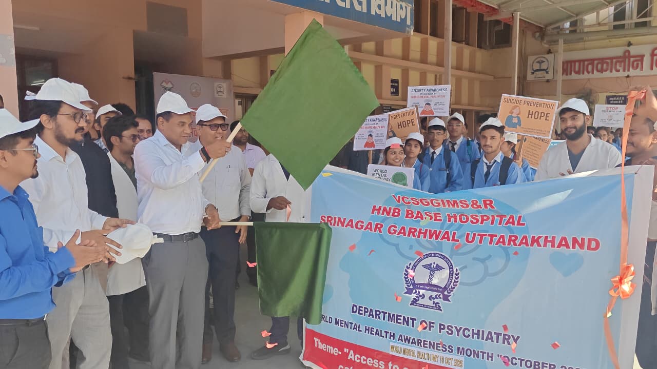 श्रीनगर प्रवास के दौरान स्वास्थ्य सचिव ने विश्व मानसिक स्वास्थ्य दिवस (World Mental Health Day) के अवसर पर मेडिकल कॉलेज परिसर से आयोजित जागरूकता रैली को हरी झंडी दिखाकर रवाना किया। उन्होंने इस अवसर पर कहा कि मानसिक स्वास्थ्य, शारीरिक स्वास्थ्य जितना ही महत्वपूर्ण है और समाज के हर वर्ग को इसके प्रति जागरूक होने की आवश्यकता है। डॉ. राजेश कुमार ने कहा कि तनावमुक्त जीवन, संतुलित आहार, पर्याप्त नींद और सकारात्मक सोच मानसिक स्वास्थ्य के लिए आवश्यक तत्व हैं। उन्होंने मेडिकल कॉलेज प्रशासन से कहा कि मानसिक स्वास्थ्य पर जागरूकता बढ़ाने के लिए निरंतर कैंप और जनजागरूकता कार्यक्रम आयोजित किए जाएं।