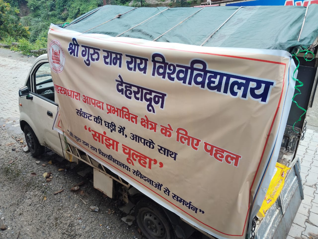 श्री गुरु राम राय विश्वविद्यालय की कुलपति प्रोफेसर (डॉ.) कुमुद सकलानी ने गुरुवार को खाद्य सामग्री से लदे वाहनों को हरी झंडी दिखाकर राहत कार्यों की औपचारिक शुरुआत की। राहत सामग्री में अनाज, दवाइयाँ और दैनिक जीवन की आवश्यक वस्तुएँ शामिल थीं।