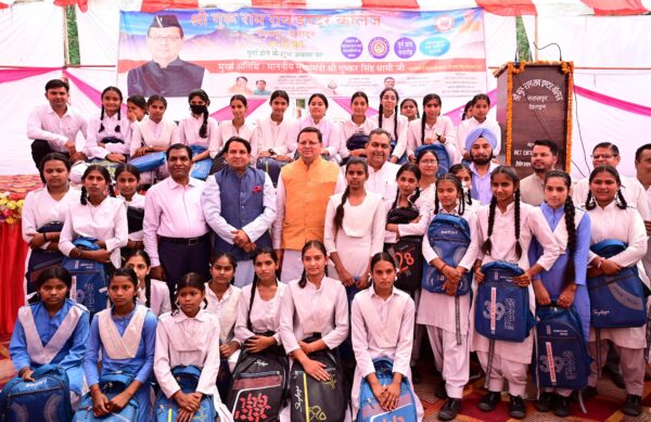 देहरादून : मुख्यमंत्री पुष्कर सिंह धामी ने मंगलवार को देहरादून के सहसपुर स्थित श्री गुरु राम राय इंटर कॉलेज के 70 वर्ष पूर्ण होने पर आयोजित कार्यक्रम में भाग लिया। इस अवसर पर उन्होंने कई वरिष्ठजनों को सम्मानित किया और स्कूली बच्चों को बैग वितरित किए।