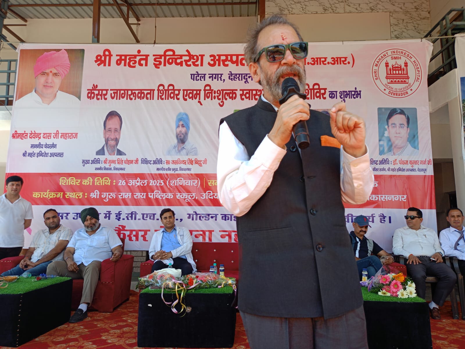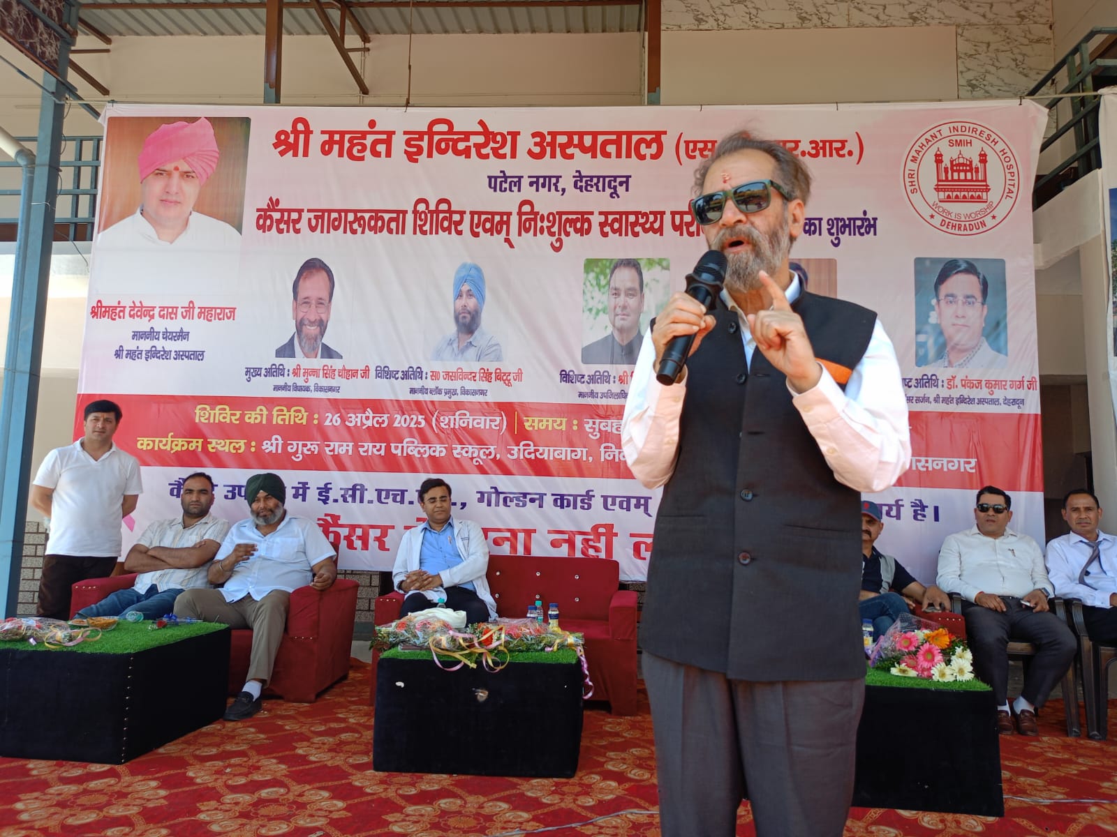 मुख्य अतिथि मुन्ना सिंह चौहान ने कहा कि श्री महंत इन्दिरेश अस्पताल, देहरादून की ओर से स्वास्थ्य सेवाओं में बेहतरनी कार्य किया जा रहा है। कैंसर की बीमारी के प्रति समाज को जागरूक होने की आवश्यकता है। श्री महंत इन्दिरेश अस्पताल, देहरादून ने विकासनगर क्षेत्र में कैंप आयोजित कर क्षेत्रवासियों को कैंसर जागरूकता के बारे में महत्वपूर्णं जानकारियां सांझा की और आमजन के लिए कैंप लगाया। इसके लिए उन्होंने श्री महंत इन्दिरेश अस्पताल के चेयरमैन श्री महंत देवेन्द्र दास जी महाराज का विशेष रूप से आभार व्यक्त किया। उन्होंने कहा कि श्री महंत इन्दिरेश अस्पताल की यह पहल् स्वागत योग्य है। शिविर आयोजित करने के लिए उन्होंने श्री महंत इन्दिरेश अस्पताल प्रबन्धन एवं अस्पताल की पूरी टीम को बधाई दी।