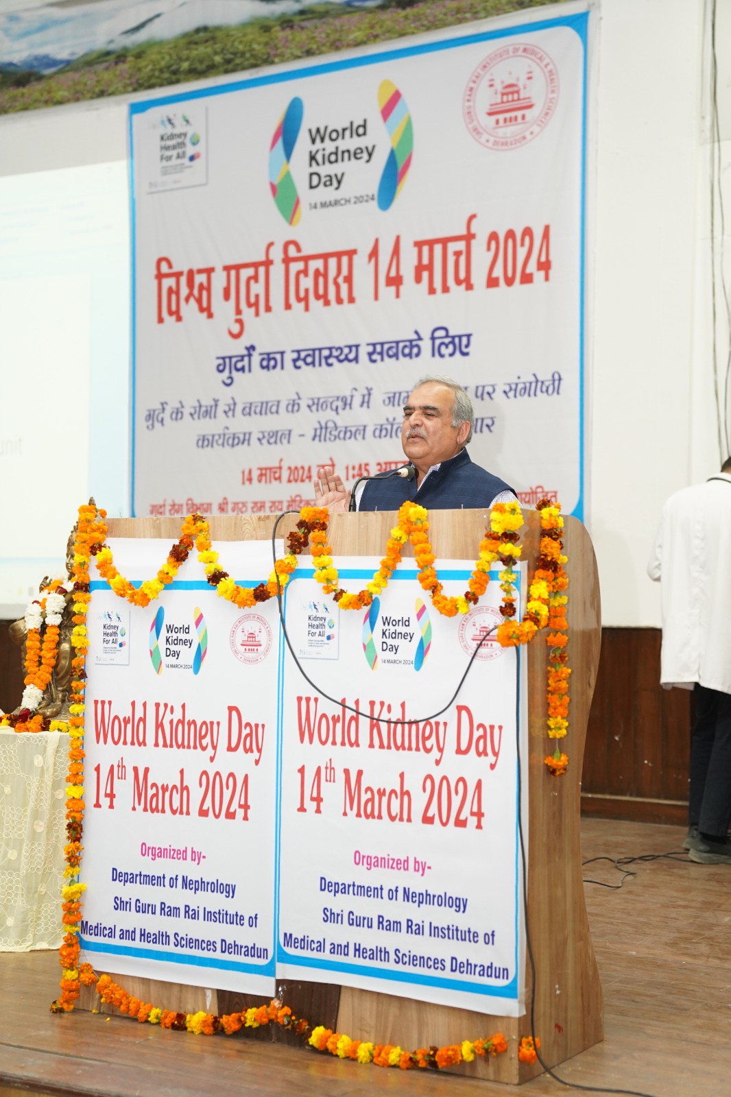 श्री महंत इन्दिरेश अस्पताल के वरिष्ठ गुर्दा रोग विशेषज्ञ डॉ. आलोक कुमार ने विश्व गुर्दा दिवस के महत्व पर प्रकाश डाला। उन्होंने जानकारी दी कि मधुमेह, उच्च रक्तचाप, अनियमित जीवन शैली व दूषित जल का उपयोग गुर्दा रोग बढने के प्रमुख कारक हैं। श्री महंत इन्दिरेश अस्पताल में अब तक 25 गुर्दा प्रत्यारोपण सफलतापूर्वक हो चुके हैं। गुर्दा रोग विशेषज्ञ डॉ. विवेक रूहेला ने गुर्दा रोगों से जुड़े खतरों एवं बचाव के बारे में विस्तारपूर्वक जानकारी दी। यूरोलाॅजी विशेषज्ञों की टीम ने पथरी से सम्बन्धित बीमारियों पर पैनल परिचर्चा की। यूरोलोजिस्ट डॉ. विमल कुमार दीक्षित ने अपने सम्बोधन में जानकारी दी कि जिन क्षेत्रों में पानी में अधिक कैल्शियम की मात्रा होती है वहां पर किडनी रोगों की सम्भावना अधिक होती है जिसमें देहरादून भी शामिल है।