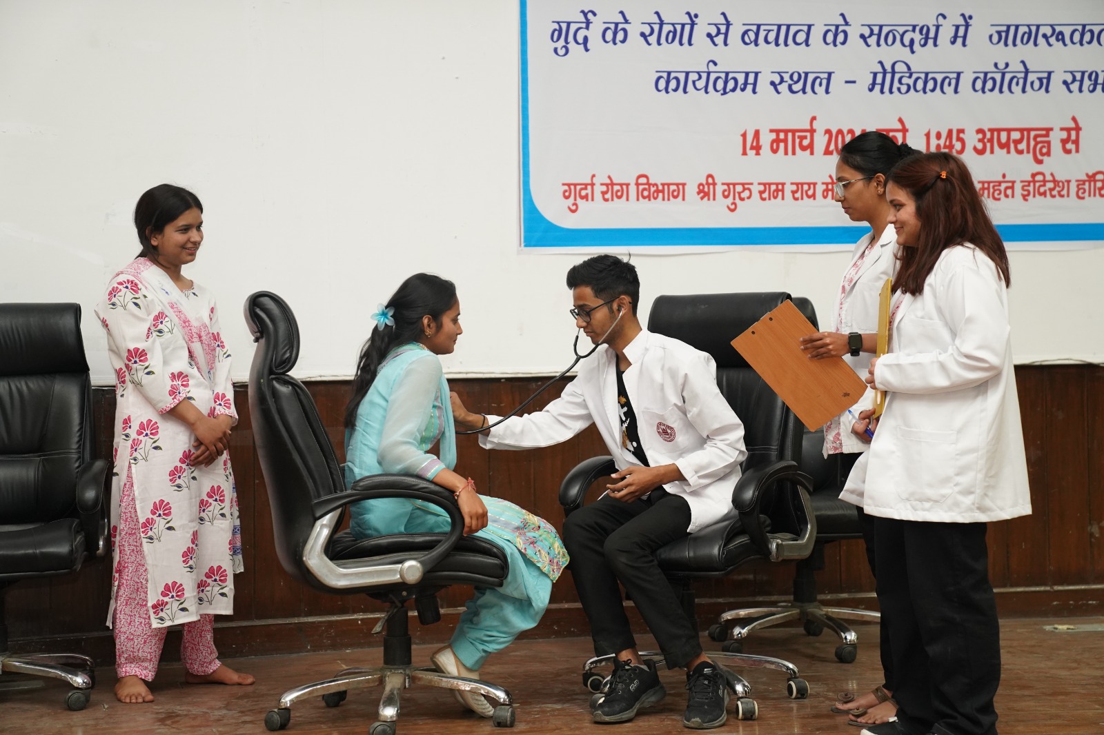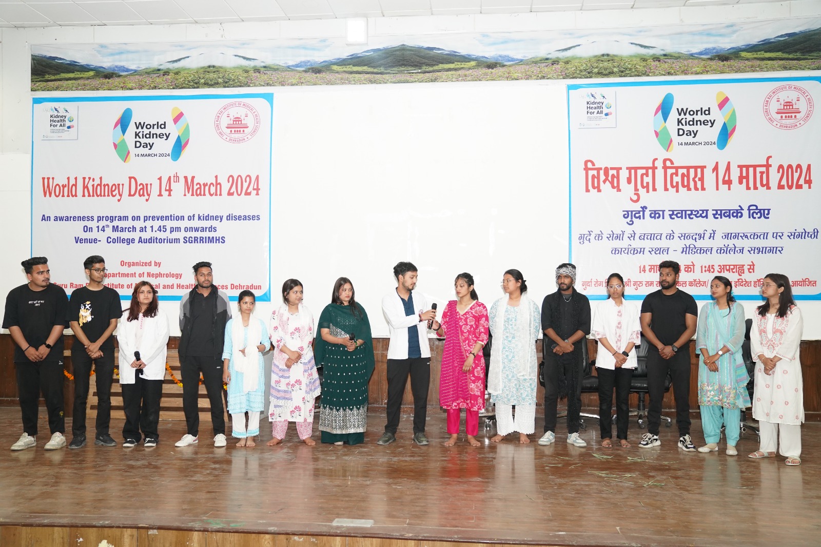 इससे पूर्व गुरुवार सुबह श्री गुरु राम राय इंस्टीट्यूट ऑफ मेडिकल एण्ड हैल्थ साइंसेज परिसर से जनजागरूकता रैली निकाली गई। गुर्दा रोग विभागाध्यक्ष, श्री महंत इन्दिरेश अस्पताल डॉ. आलोक कुमार ने हरी झण्डी दिखाकर रैली को रवाना किया। रैली में 200 से अधिक डॉ.क्टरों, मेडिकल छात्र-छात्राओं व स्टाफ ने प्रतिभाग किया। गुर्दा स्वस्थ रखने हेतु संतुलित आहार, उच्च रक्तचाप व मधुमेह को नियंत्रित रखें, स्वस्थ्य जल व हो साफ हवा तो होगा स्वस्थ शरीर, सब रोग होंगे दफा, गुर्दों के रोगों से हो सकता है बचाव अगर समय से जाएं डॉक्टर के पास लिखे संदेश लेकर मेडिकल छात्र-छात्राओं ने गुर्दा स्वास्थ्य सबके लिए विषय पर एक कार्यक्रम आयोजित किया गया।