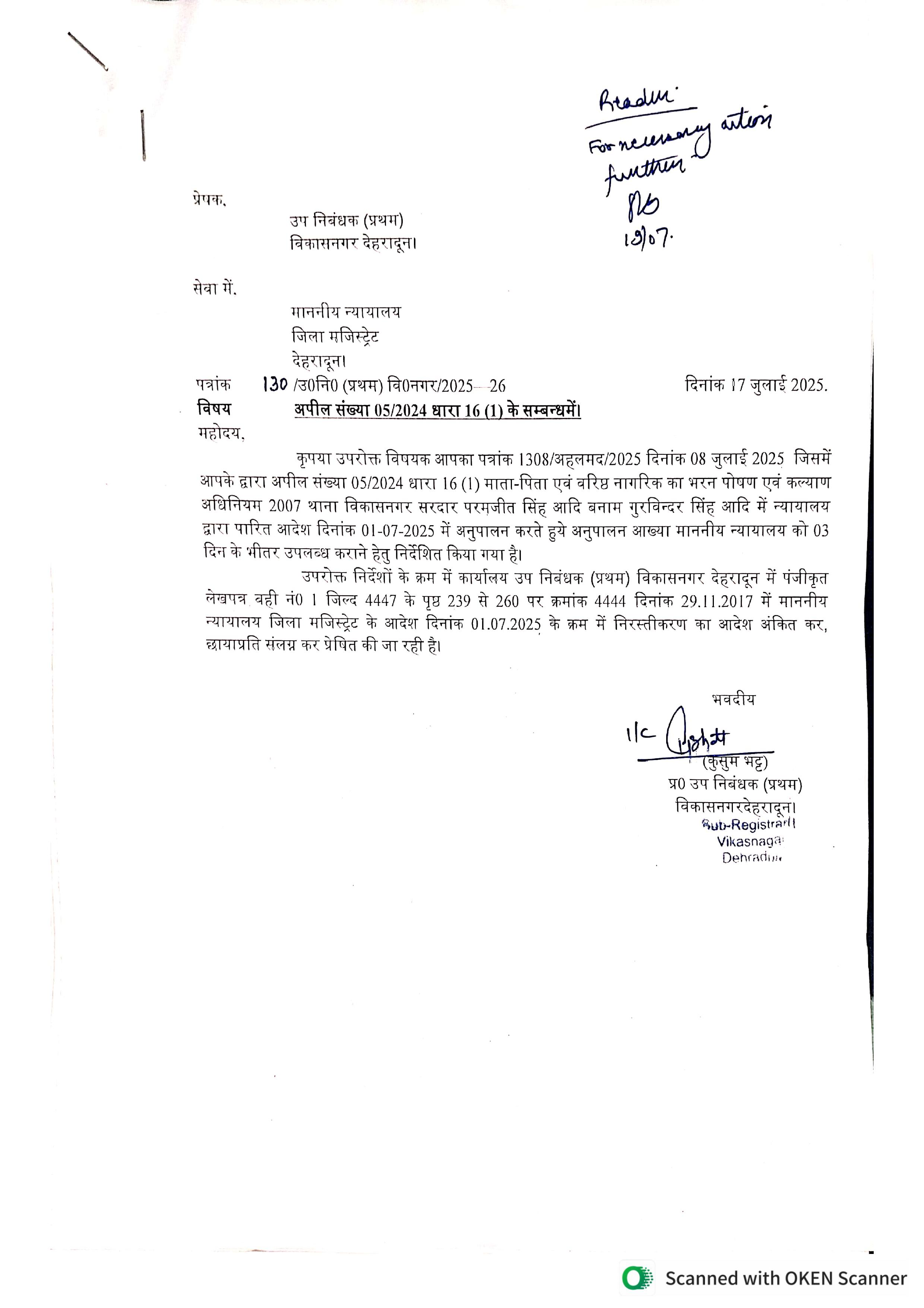 • डीएम के आदेशानुसार रजिस्ट्री आफिस से अनुपालन किया गया पेश