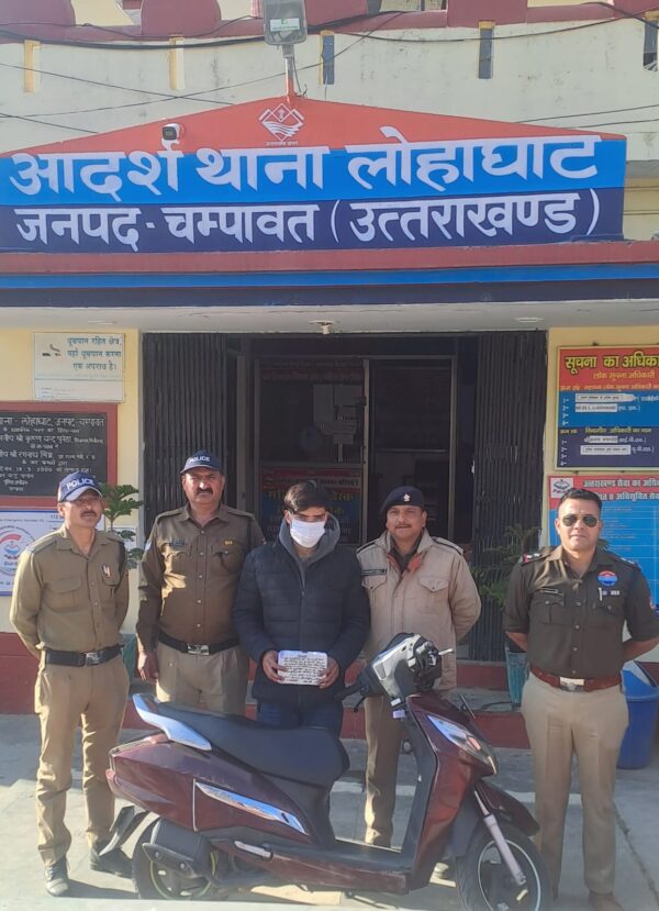 लोहाघाट/चम्पावत : थाना लोहाघाट क्षेत्रान्तर्गत 30.90 ग्राम हैरोइन (स्मैक) के साथ 01 अभियुक्त गिरफ्तार, 01 स्कूटी सीज। पुलिस अधीक्षक अजय गणपति के निर्देशानुसार तथा पुलिस उपाधीक्षक चम्पावत के पर्यवेक्षण में जनपद चम्पावत में मादक पदार्थों की तस्करी करने वाले व्यक्तियों के विरूद्ध कार्यवाही किये जाने हेतु सभी थाना प्रभारियों को निर्देशित किया गया है। उक्त के क्रम में 19 फरवरी 2025 को जनपद चम्पावत के थाना लोहाघाट क्षेत्रान्तर्गत उप निरीक्षक हरीश प्रसाद प्रभारी चौकी बाराकोट द्वारा मय पुलिस टीम चैकिंग अभियान के दौरान देवराड़ी बैण्ड लोहाघाट क्षेत्र मे अभियुक्त सागर वर्मा पुत्र दीपचंद वर्मा निवासी ग्राम फरतोला (बाराकोट) थाना लोहाघाट जनपद चंपावत उम्र लगभग 25 वर्ष को वाहन स्कूटी एक्टिवा संख्या –UK03C- 5046 में 30.90 ग्राम हेरोइन कब्जे में लेकर परिवहन करने पर गिरफ्तार किया गया तथा घटना में प्रयुक्त वाहन स्कूटी को सीज किया गया। उक्त सम्बन्ध में थाना लोहाघाट में मु0अ0सं0- 07/2025 अन्तर्गत धारा 08/21/60 एन0डी0पी0एस0 एक्ट पंजीकत किया गया।