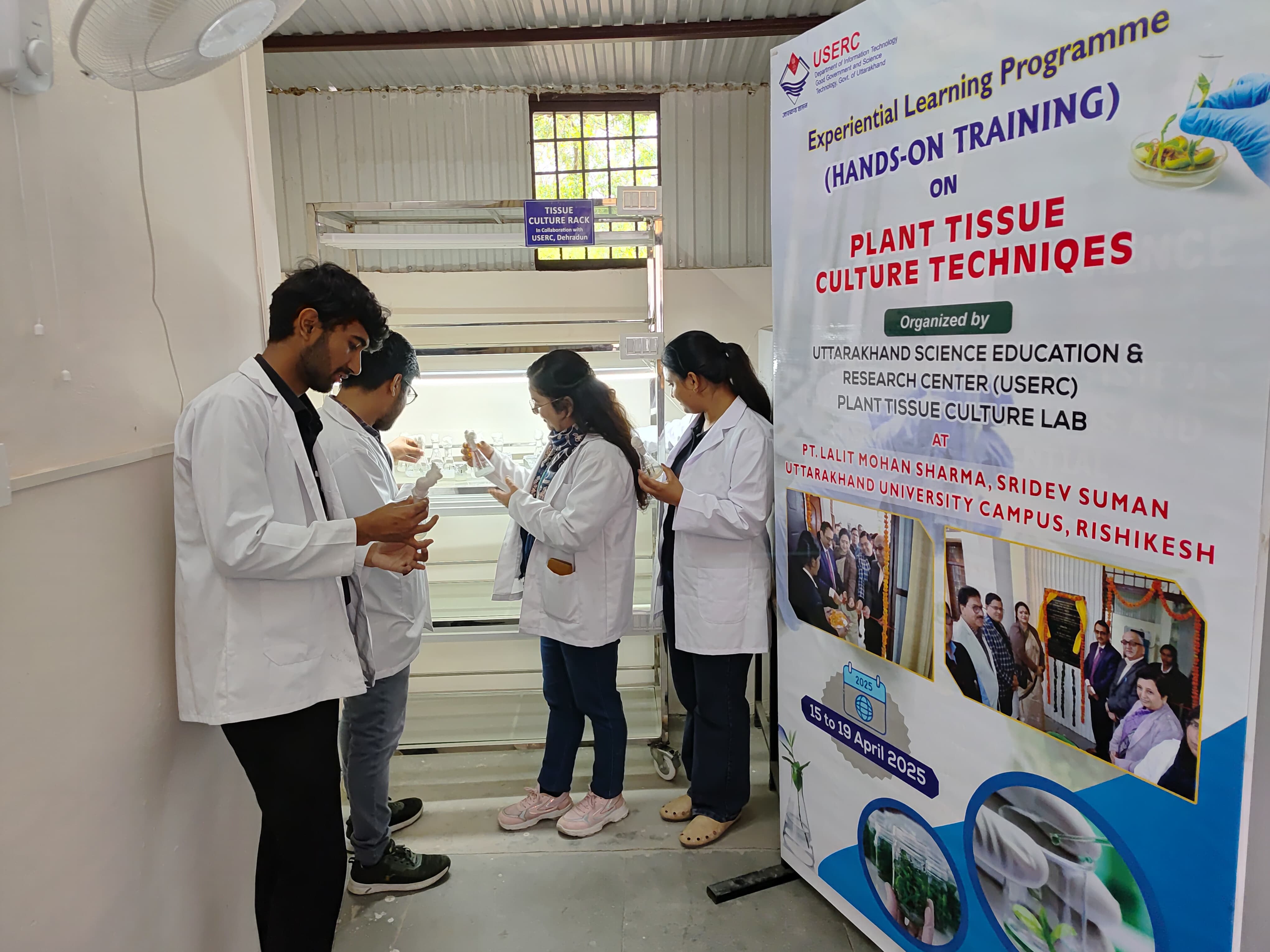 इसी क्रम में पांच दिवसीय इस हैंड्स ऑन ट्रेंनिंग कार्यशाला का आयोजन ऋषिकेश परिसर में किया गया है जिसमें विशेषकर पर्वतीय क्षेत्र के महाविद्यालय में अध्यनरत छात्र-छात्राओं को प्लांट टिश्यू कल्चर तकनीकी को जानने व सीखने का अवसर प्राप्त हुआ। इसी प्रकार प्रतिभागी इस तकनीकी के विभिन्न प्रयोगों से अपने रोजगार का अवसर भी पा सकते हैं। इस तकनीकी से पादपो का वाणिज्यिक उत्पादन किया जा सकता है, जैसे फलों, सब्जियों व आर्नामेंटल प्लांट्स का प्रयोगशाला में उत्पन्न कर अधिक उत्पादन कर सकते हैं व इसी प्रकार विभिन्न जलवायु असंतुलन के कारण विलुप्त हो रही पादप प्रजातियों को भी प्लांट टिश्यू कल्चर तकनीकी से सहेज कर पुनः रोगमुक्त उत्पादन कर सकते हैं। इसी प्रकार औषधिय पादपो को प्रयोगशाला में प्लांट टिश्यू कल्चर तकनीकी से उगा कर ग्रीन हाउस में अधिक उत्पादन कर सकते हैं।
