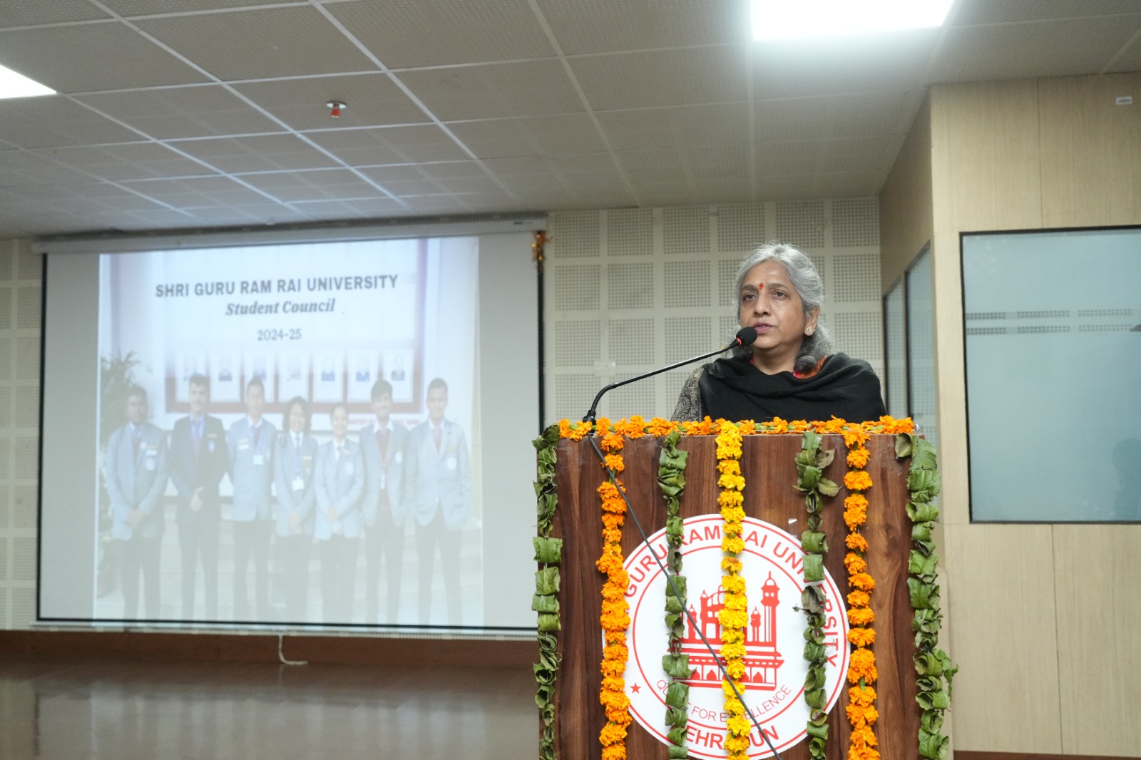 कार्यक्रम का शुभारंभ दीप प्रज्वलित कर किया गया। छात्रों को संबोधित करते हुए विश्वविद्यालय की कुलपति प्रो. डॉ कुमुद सकलानी ने कहा कि यह छात्रों के सम्मान का दिवस है,उन्होंने खुशी व्यक्त की कि छात्रों में नेतृत्व के गुण पनप रहे हैं। इस अवसर पर प्रो जेपी पचैरी, सलाहकार, माननीय प्रेसीडेंट ने भी विचार व्यक्त किए। डीएसडब्ल्यू प्रोफेसर डॉ मालविका कांडपाल ने छात्रों को संबोधित करते हुए कहा कि आज छात्रों को संकल्प के साथ आगे बढ़ने की आवश्यकता है, उन्होंने आशा व्यक्त करते हुए कहा कि असफलताएं ही सफलता की सीढ़ियां होती हैं। छात्रों को अपने लक्ष्यों को प्राप्त करने के लिए कड़ी मेहनत करनी चाहिए।