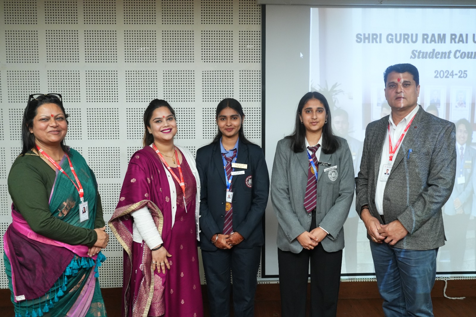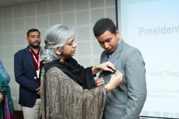 देहरादून : श्री गुरु राम राय विश्वविद्यालय में नवनिर्वाचित छात्र परिषद के सदस्यों के लिए बैज सेरिमनी का आयोजन किया गया। यूनिवर्सिटी के पथरीबाग कैंपस में आयोजित इस कार्यक्रम में विश्वविद्यालय की कुलपति प्रो. डॉ कुमुद सकलानी, कुलसचिव डॉ लोकेश गंभीर और डीएसडब्ल्यू प्रो. डॉ मालविका कांडपाल ने छात्रों को बेज पहनाकर सेरेमनी का शुभारंभ किया। इस अवसर पर विश्वविद्यालय के प्रेसिडेंट श्रीमहंत देवेंद्र दास जी महाराज ने चयनित छात्रों को शुभकामनाएं प्रेषित की।
