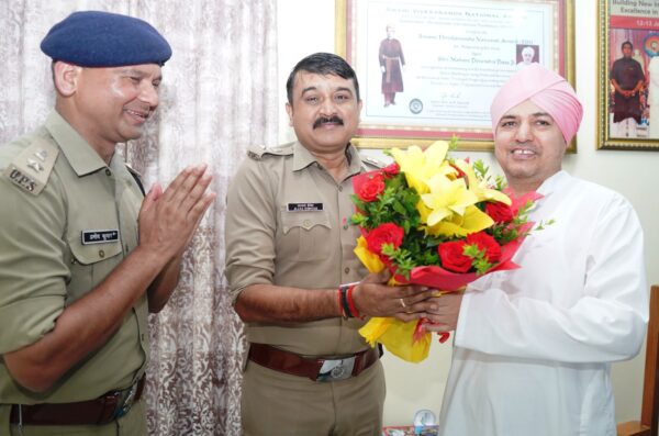 बुधवार को श्री दरबार साहिब की परंपरा के अनुसार पुलिस कप्तान अजय सिंह व पुलिस अधीक्षक प्रमोद कुमार (एस पी सिटी) का स्वागत हुआ। चर्चा के दौरान श्रीमहंत देवेन्द्र दास जी महारज व वरिष्ठ पुलिस अधीक्षक, पुलिस अधीक्षक नगर के मध्य शहर की यातायात व्यवस्था व कानून व्यवस्था सहित विभिन्न समसामयिक बिन्दुओं पर बातचीत हुई। एसएसपी ने कहा कि श्री दरबार साहिब एवम् श्री महंत इन्दिरेश अस्पताल में आगन्तुकों का भारी दबाव रहता है। उन्होंने दोनों स्थलों पर सीसीटीवी कैमरों की व्यवस्थाए निगरानीए सुरक्षा व्यवस्था सहित कई महत्वपूर्णं बिन्दुओं पर सुझाव भी दिए। वरिष्ठ पुलिस अधीक्षक ने श्रीमहंत इन्दिरेश अस्पताल के द्वारा मरीजों को दी जा रही स्वास्थ्य सेवाओं की प्रशंसा की।