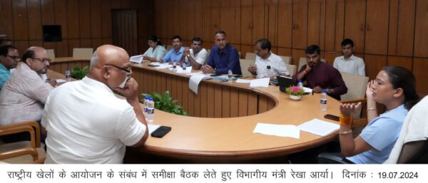 मंत्री ने कहा कि राष्ट्रीय खेलों के मद्देनजर किये जाने वाले पीएमयू की टेंडर प्रक्रिया तथा अन्य कार्यों को ससमय पूर्ण करने हेतु अधिकारियों को निर्देशित किया गया। उन्होंने कहा कि जी-20 तथा इन्वेस्टर समिट की तरह ही राष्ट्रीय खेलों का भी सफल आयोजन कराने के लिए राज्य सरकार प्रतिबद्ध है। मंत्री ने कहा कि विभाग द्वारा बरसात को ध्यान में रखकर यह निर्णय लिया गया है कि राज्य में होने वाले राज्य स्तरीय खेलों का आयोजन न कराते हुए राष्ट्रीय खेलों में भाग ले रहे खिलाड़ियों हेतु विशेष कैम्प का आयोजन किया जायेगा जिसमें खिलाड़ी अनुभवी प्रशिक्षकों से प्रशिक्षण का लाभ प्राप्त कर सकेंगे।