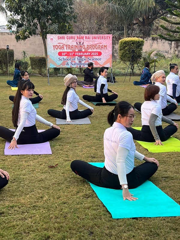 देहरादून। श्री गुरु राम राय विश्वविद्यालय (एसजीआरआरयू) के स्कूल ऑफ यौगिक साइंसेज एण्ड नैचरोपैथी में दो दिवसीय योग प्रशिक्षण शिविर का आयोजन किया गया। एसजीआरआरयू में वियतनाम के 15 सदस्यीय दल ने योग प्रशिक्षण लिया। उन्होंने योग आसान प्राणायम के महत्व को आत्मसात किया। प्रशिक्षण के दौरान उन्होंने भारतीय संस्कृति एवं दर्शन का ममत्व को जाना। वह भारतीय परंपराओं एवं योग साधनओं के गूढ़ रहस्यों को जानकर गदगद हो गए।