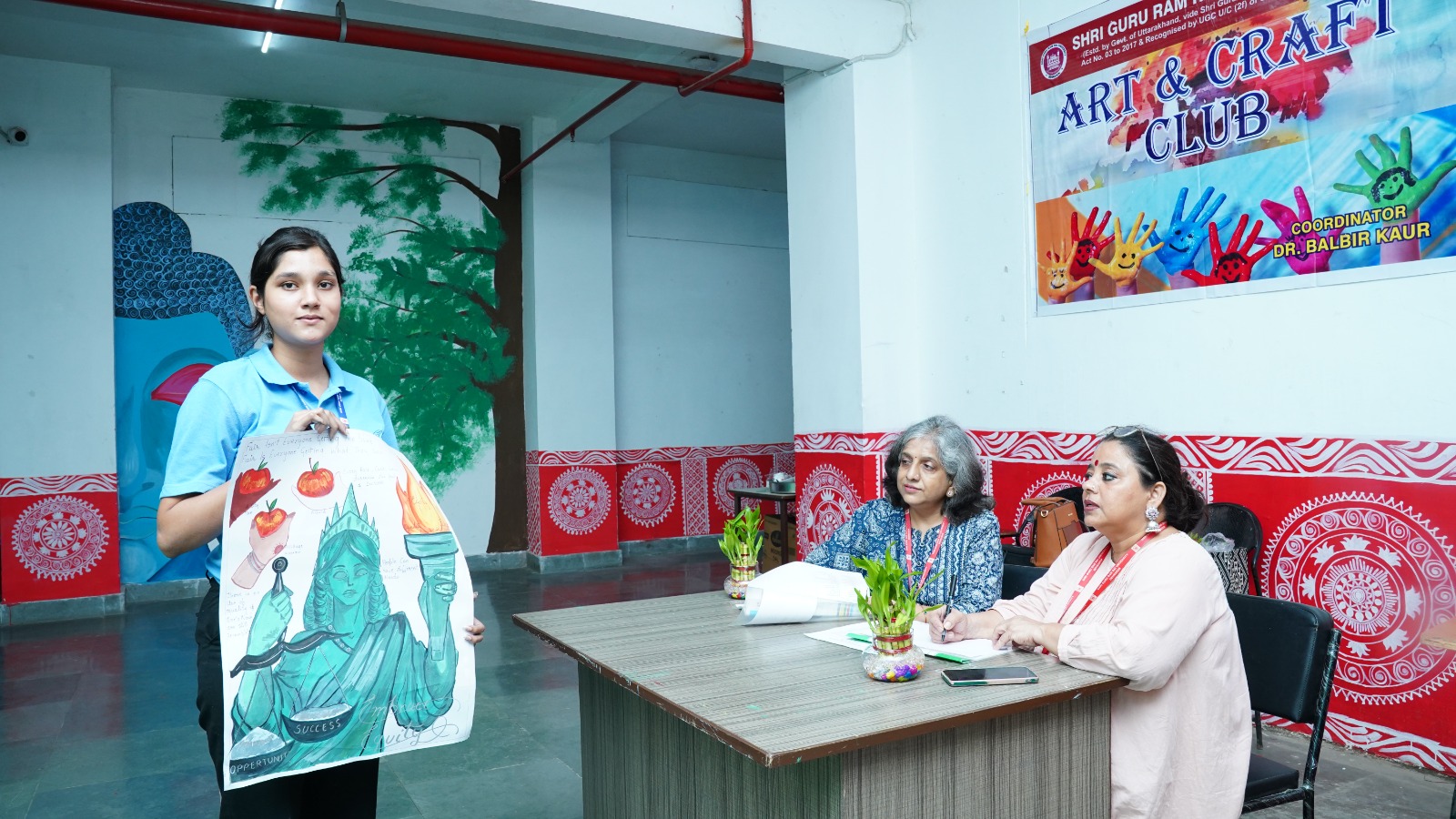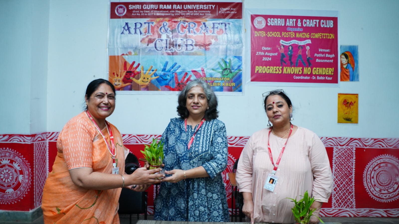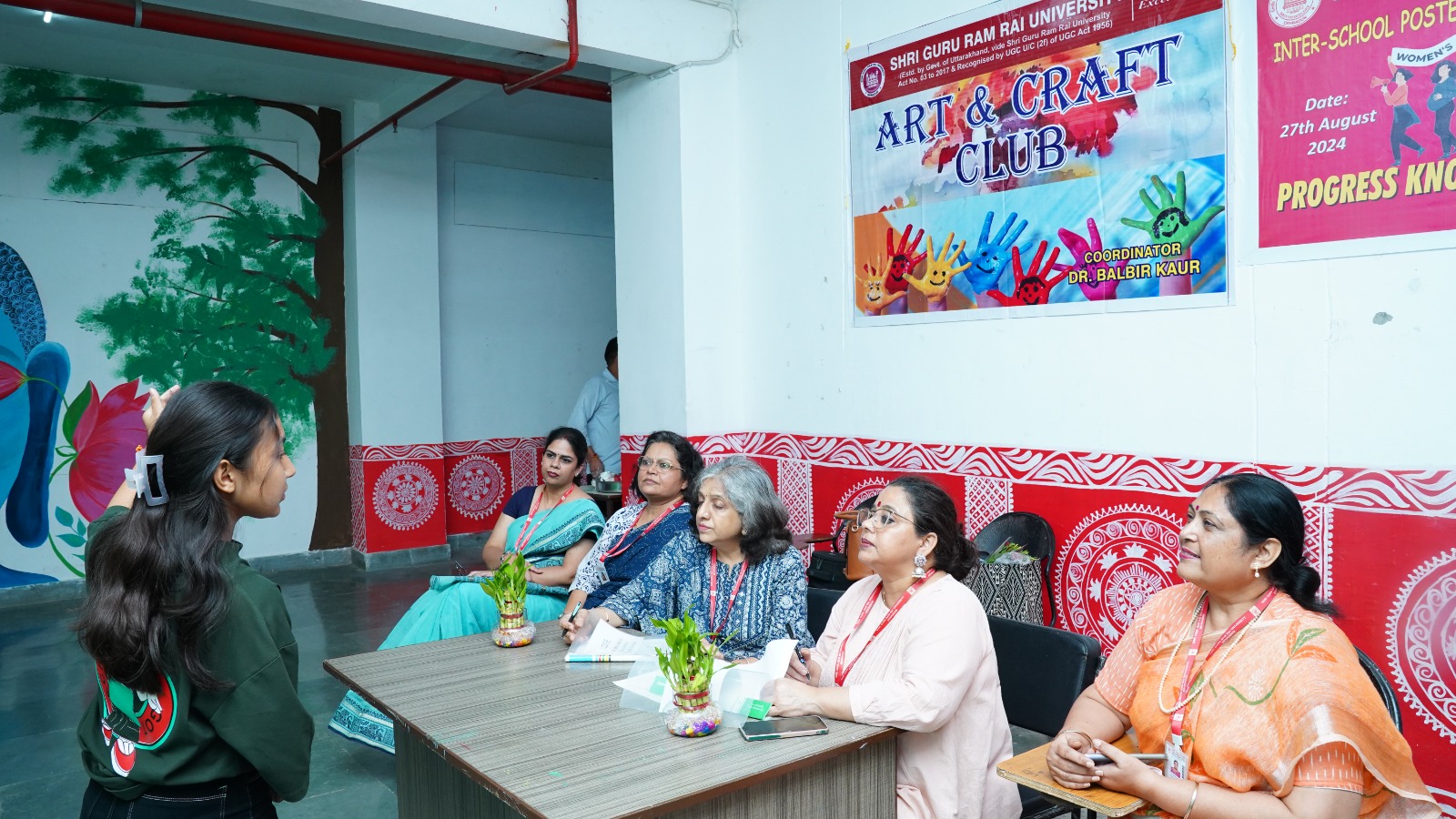 श्री गुरु राम राय विश्वविद्यालय के कला एवं शिल्प क्लब द्वारा महिला समानता दिवस के अवसर पर आयोजित प्रतियोगिता का उद्देश्य लिंग समानता के प्रति जागरूकता बढ़ाना और छात्र-छात्राओं में सृजनात्मकता को प्रोत्साहित करना रहा। इस वर्ष की प्रतियोगिता का विषय एम्ब्रेस इक्विटी था, जो समावेशिता और समानता को बढ़ावा देने की हमारी प्रतिबद्धता को दर्शाता है।  प्रतियोगिता के निर्णायक मंडल में डाॅ. कुमुद सकलानी, डीन एकेडमिक्स और डाॅ. सुमन विज, आईक्यूएसी निदेशक शामिल थीं। कार्यक्रम की समन्वयक, कला एवं शिल्प क्लब की प्रमुख, प्रो. बलबीर कौर थीं। इस अवसर पर विश्वविद्यालय के सभी स्कूलों के डीन, विभागाध्यक्ष, शिक्षकगण समेत सैकड़ों छात्र-छात्राएं उपस्थित रहे।