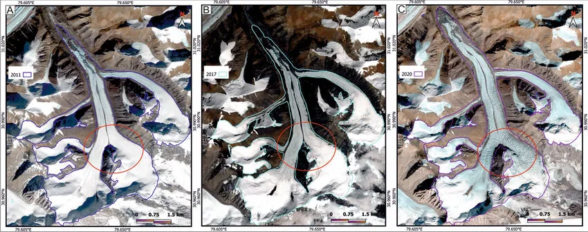 48 वर्ग किमी में फैला ये खास ग्लेशियर चमोली के धौलीगंगा बेसिन में मौजूद है। दरअसल, हाल ही में वाडिया इंस्टीट्यूट ऑफ़ हिमालयन जियोलॉजी के ग्लेशियोलॉजिस्ट डॉ. मनीष मेहता की टीम का एक रिसर्च पेपर “Manifestations of a glacier surge in central Himalaya using multi‑temporal satellite data” पब्लिश हुआ।