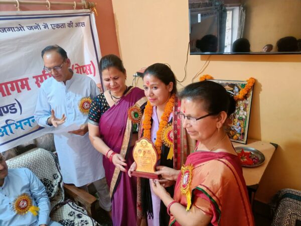 इस अवसर पर गेप्स की सहमंत्री शिक्षिका मीनाक्षी बड़थ्वाल को उनकी उत्कृष्ट सामाजिक सेवा एवं संगठनात्मक सहयोग के लिए अंगवस्त्र, ट्रॉफी एवं सम्मान पत्र देकर शैलपुत्री सम्मान से नवाजा गया। सम्मान पत्र का वाचन संस्थापक आरबी कंडवाल ने किया। इस अवसर पर मुख्य अतिथि ने कहा कि सभी स्त्रियों में भगवती का स्वरूप देखने से ही जगत का कल्याण संभव है, विशिष्ट अतिथि कुलदीप मेंदोला ने यत्र नर्यास्तु पूज्यंते रमयंते तत्र देवता का मूल मंत्र देते हुए गेप्स के कार्यों की प्रशंसा की। कार्यक्रम का संचालन कोषाध्यक्ष मोहन काला ने किया।